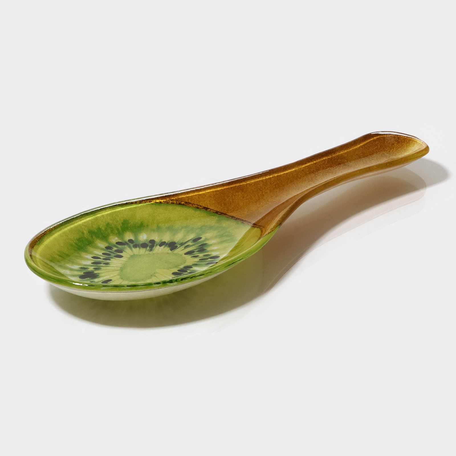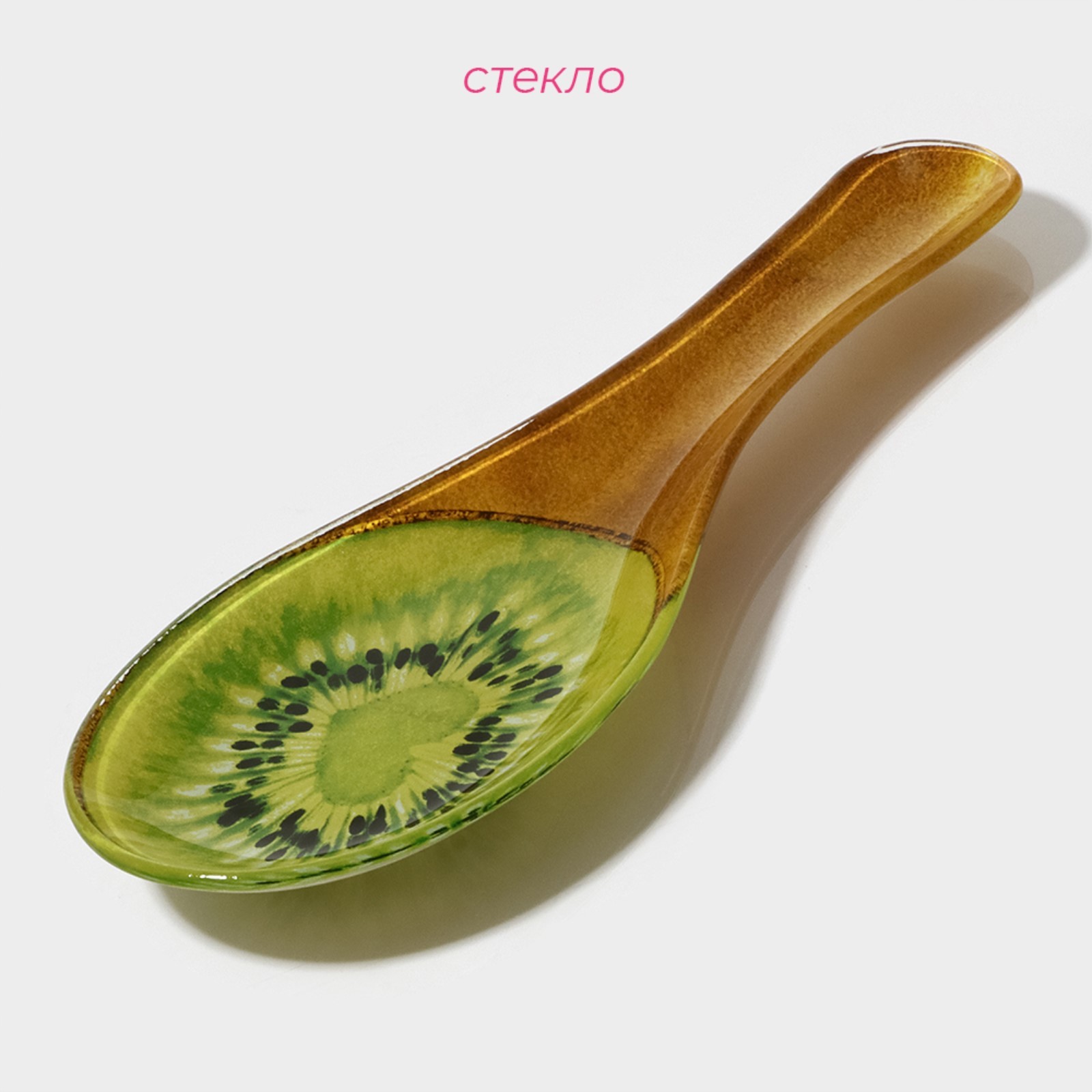 Подставка стеклянная под ложку доляна «романтичный киви», 23,5x8,3 см, цвет зелёный