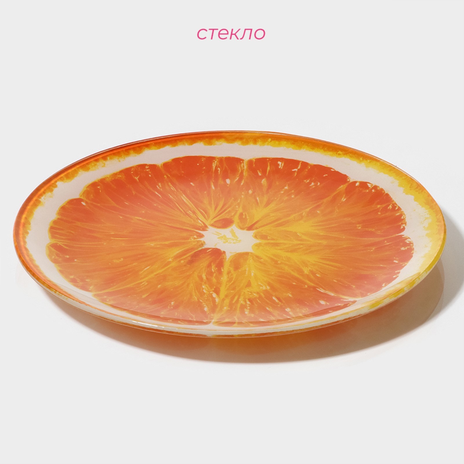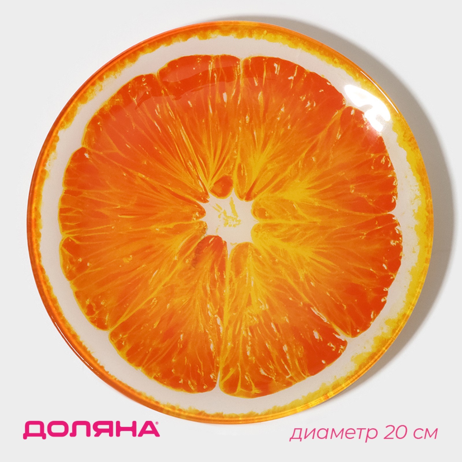 Тарелка стеклянная обеденная доляна «сочный апельсин», D=20 см, цвет оранжевый