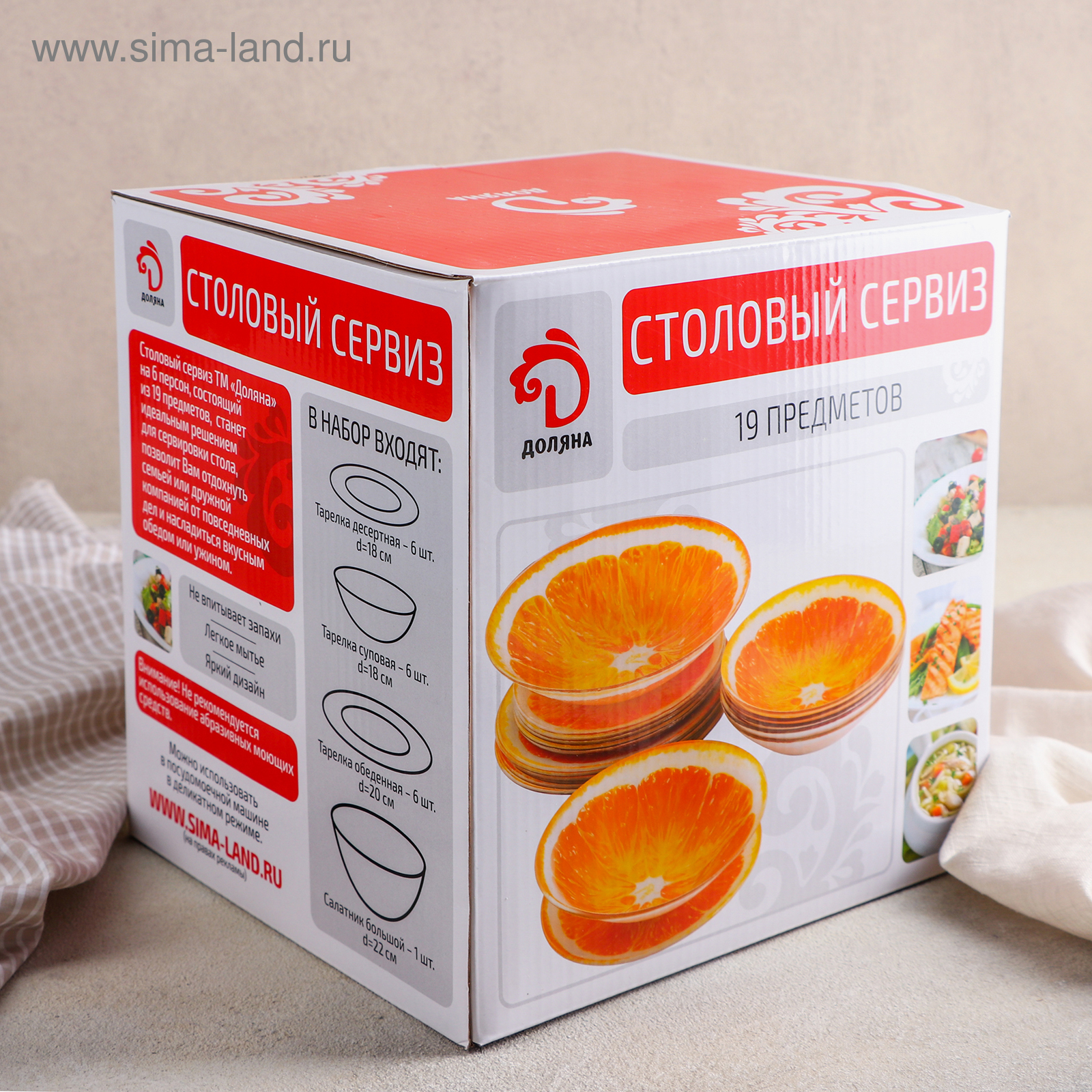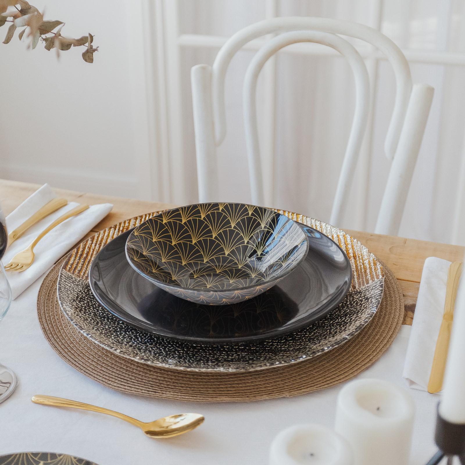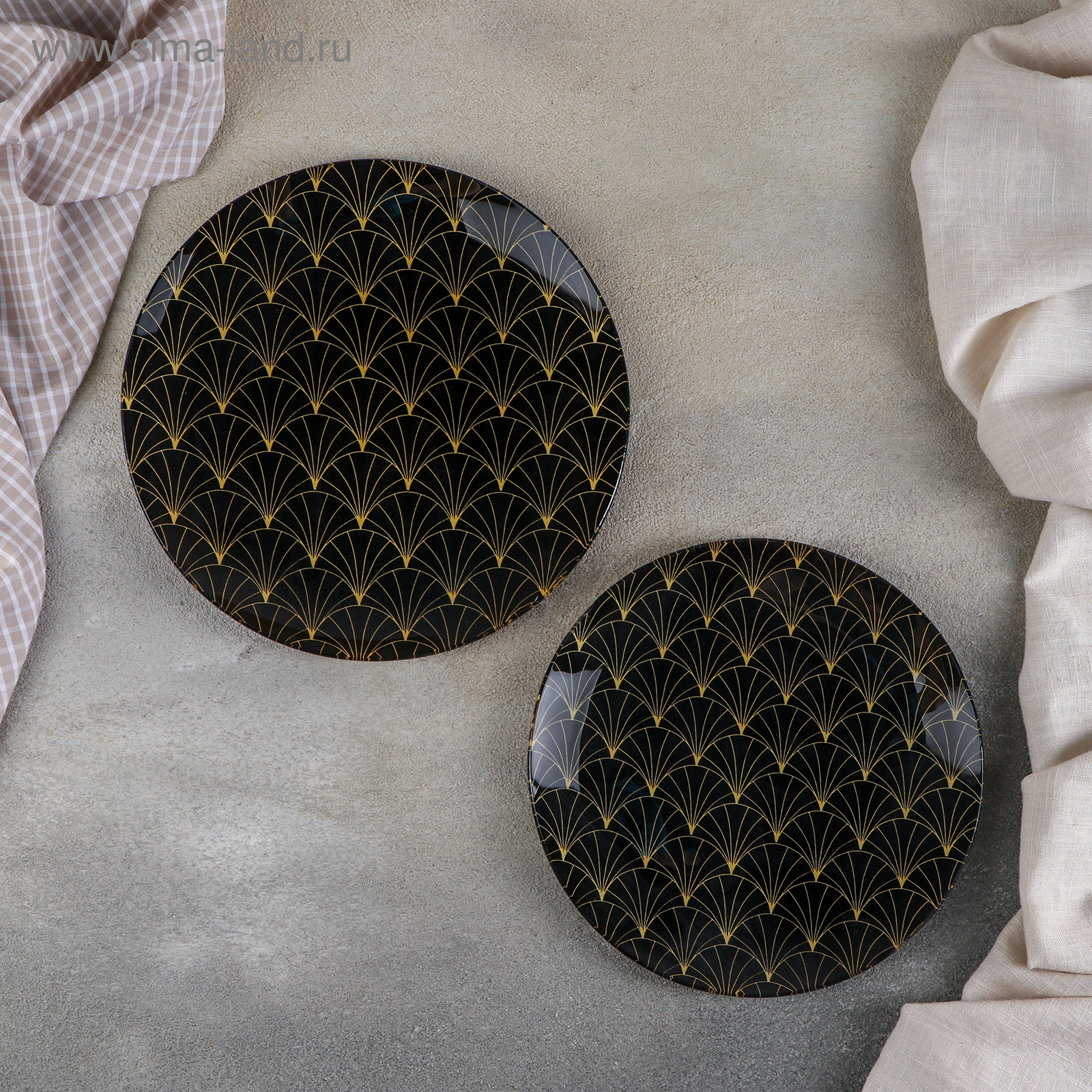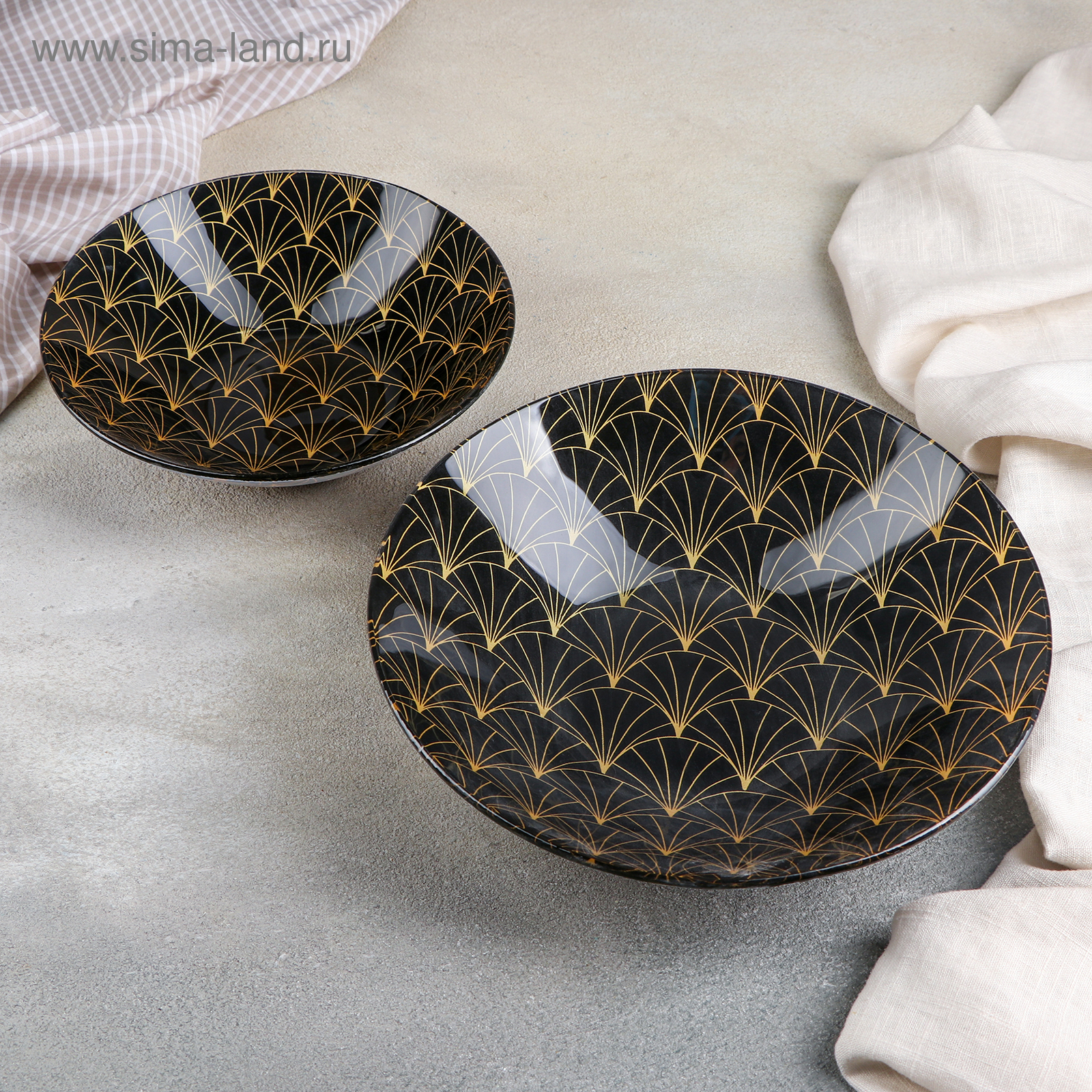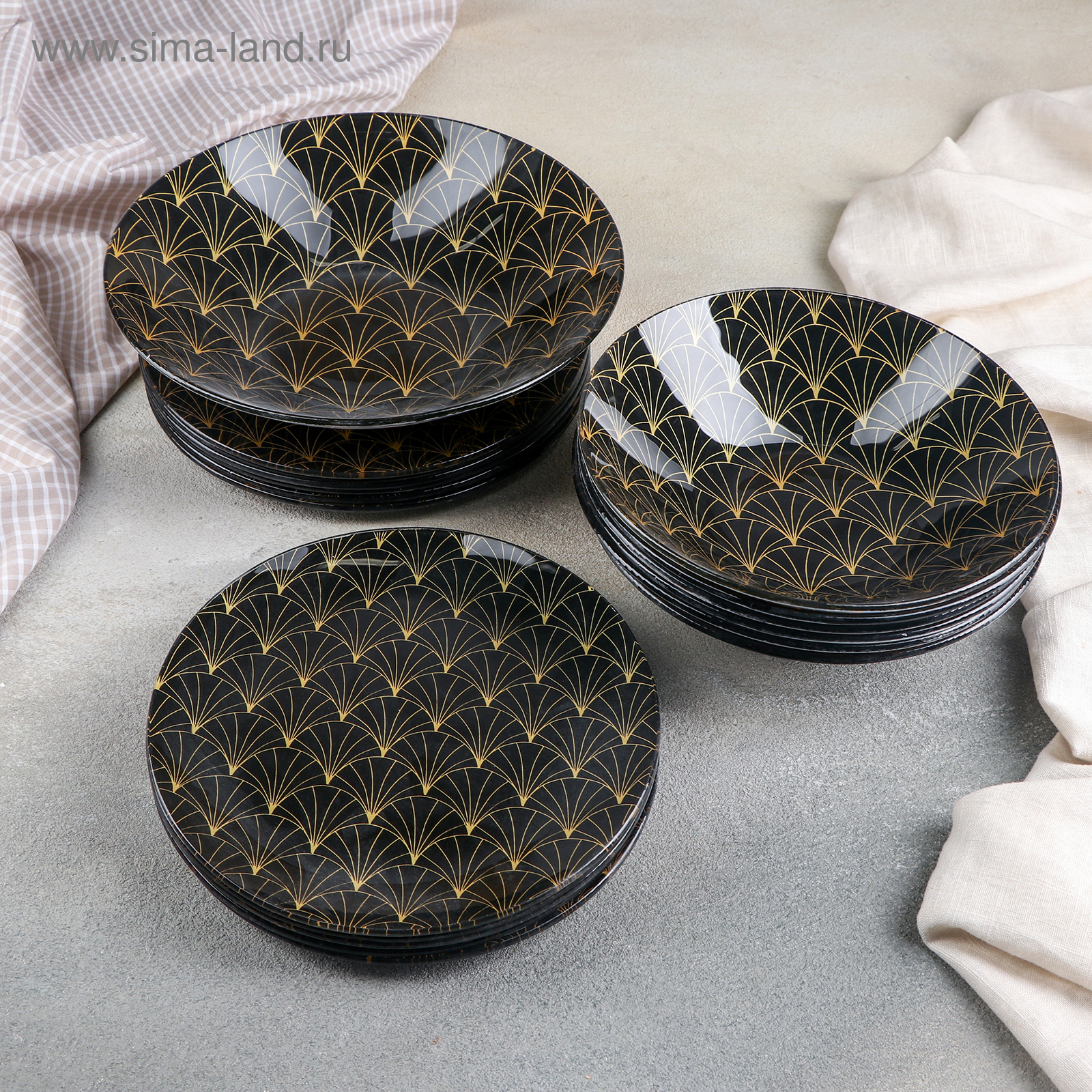 Набор тарелок стеклянных доляна «золотое перо», 19 предметов: 6 десертных тарелок, 6 обеденных тарелок, 6 мисок, салатник, цвет