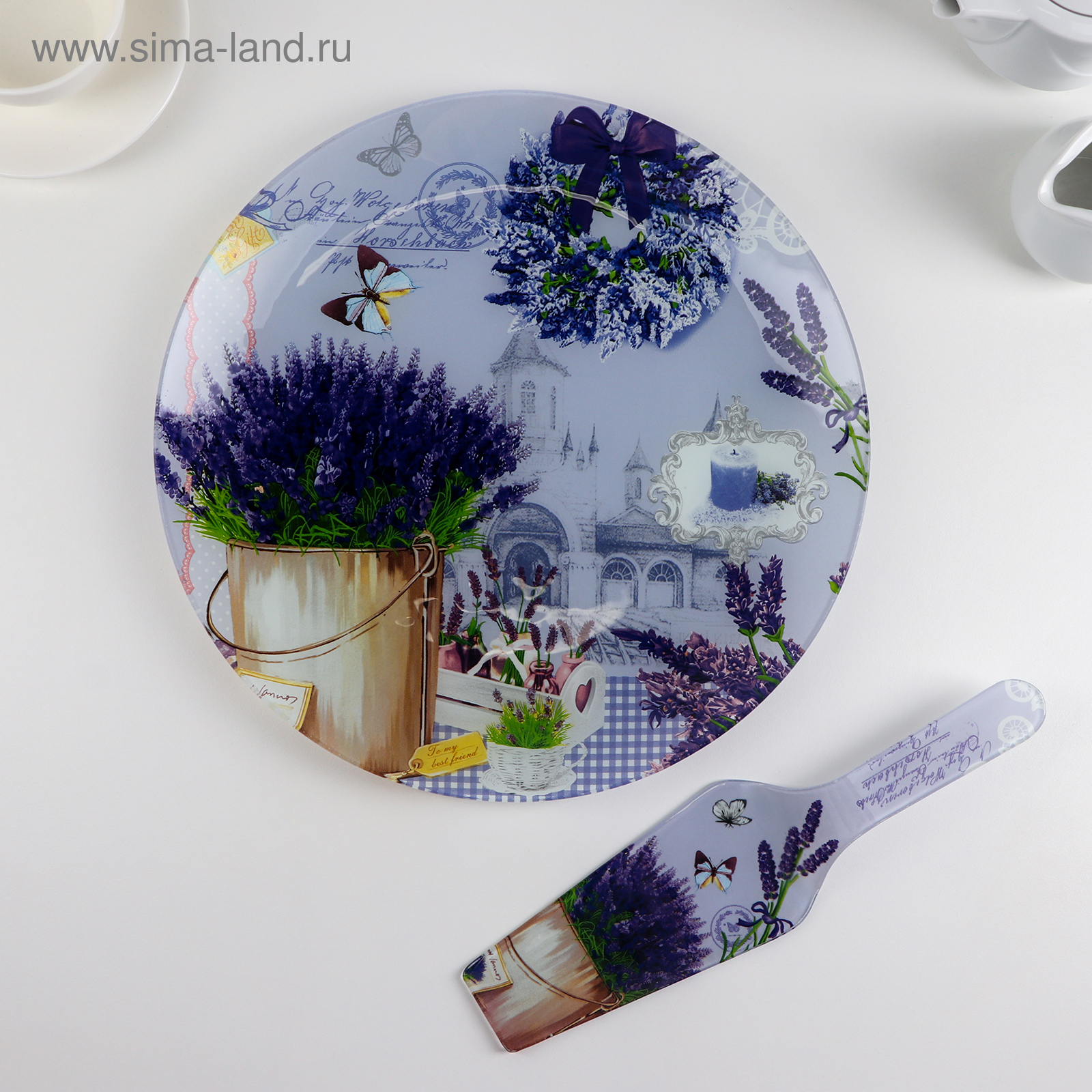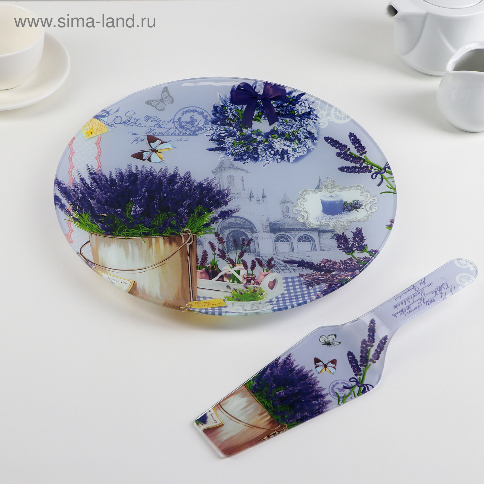 Тортовница стеклянная с лопаткой доляна «лаванда», D=30 см, лопатка 26,5x7 см