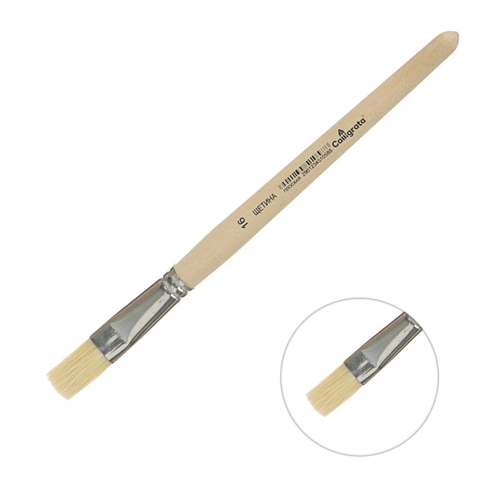 Кисть для рисования, щетина плоская №16 (ширина обоймы 16 мм; длина волоса 24 мм), деревянная ручка, Calligrata