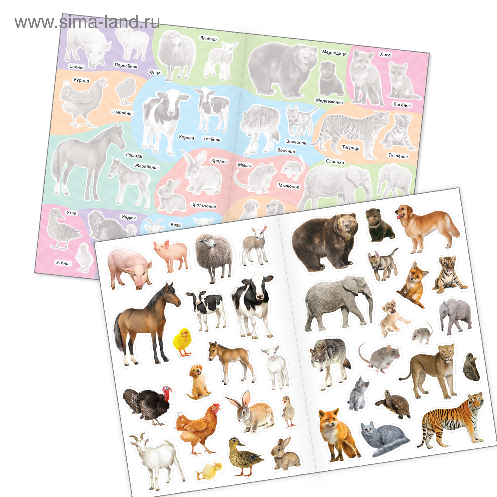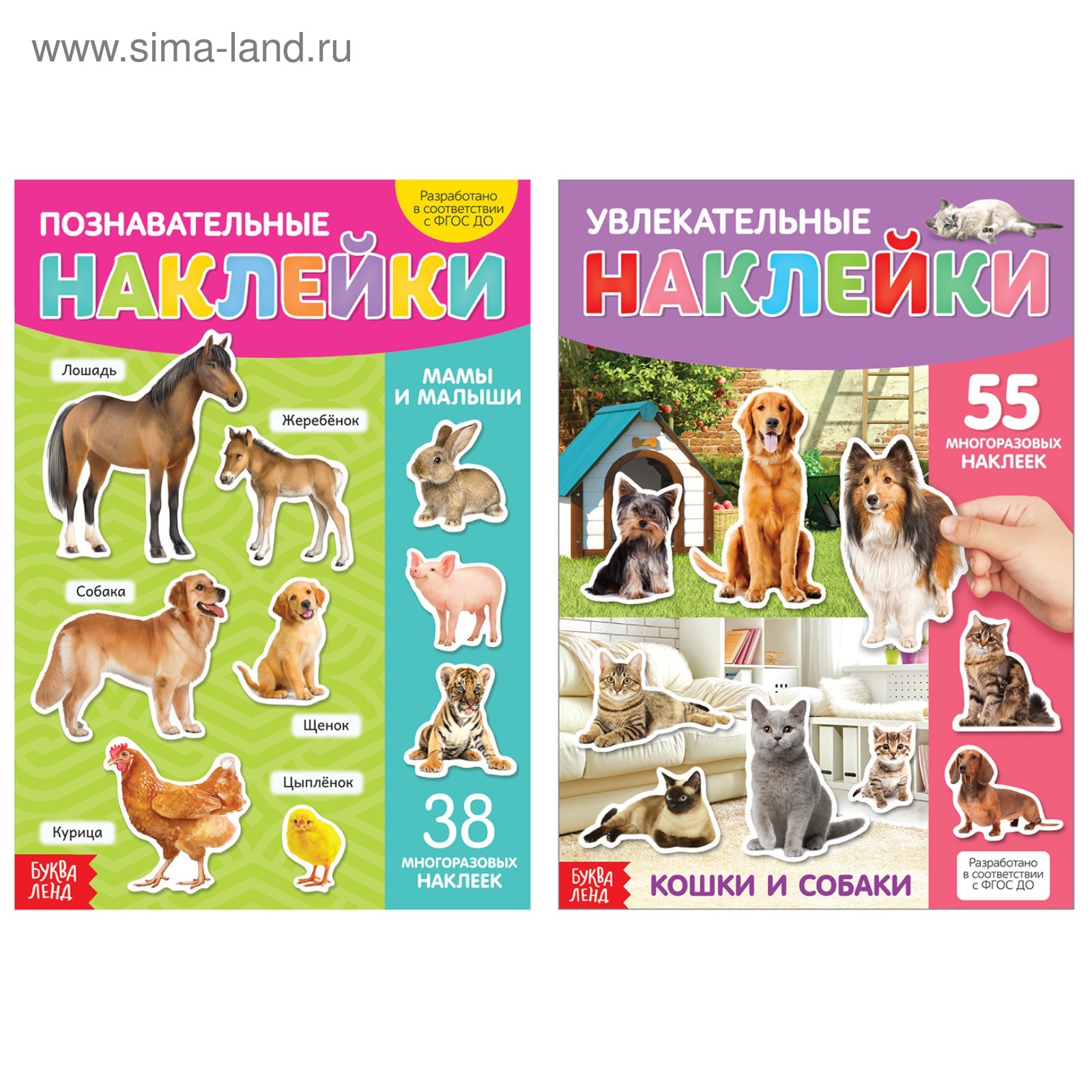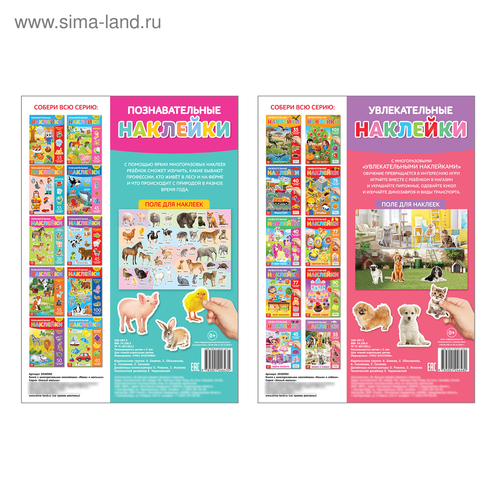 Книги с наклейками многоразовыми «такие разные животные», набор 2 шт.. Набор многоразовых детских наклеек включает в себя 2 издания разной тематики: «Кошки и собаки» и «Мамы и малыши». Превращайте обучение в увлекательную игру и развивайте полезные навыки. Что внутри В каждой книге есть много красочных наклеек и поле для них. Яркие стикеры можно использовать по 3 4 раза. Подходят для декорирования тетрадей и дневничков. Чем полезны С многоразовыми наклейками ребёнок познакомится с названиями разных животных, подберёт домик каждому питомцу, а также потренирует воображение, аккуратность, пространственное мышление и мелкую моторику рук. В серии «Увлекательные наклейки» 10 изданий: Динозавры».«Что где растёт».«Транспорт».«Стройка».«Мир пони».«Светлая Пасха».«Мой магазин».«Юный повар».«Одень куколку».«Кошки и собаки».Соберите всю серию наклеек и расширяйте кругозор малыша! Рекомендовано для детей от 2 лет. Набор:Да|Для кого:Унисекс|Формат:А4|Возраст:От 2 лет|Количество страниц:4|Тематика:Животный мир|Тематика праздника:Универсальная тематика|Вид наклейки:Бумажная|Вид наклейки:Многоразовые|Тип обложки:Мягкий переплёт|Автор:Сачкова Евгения Камилевна|Страна:Китай  развернуть описание ▼