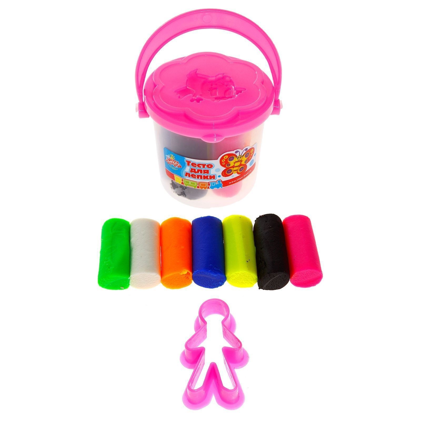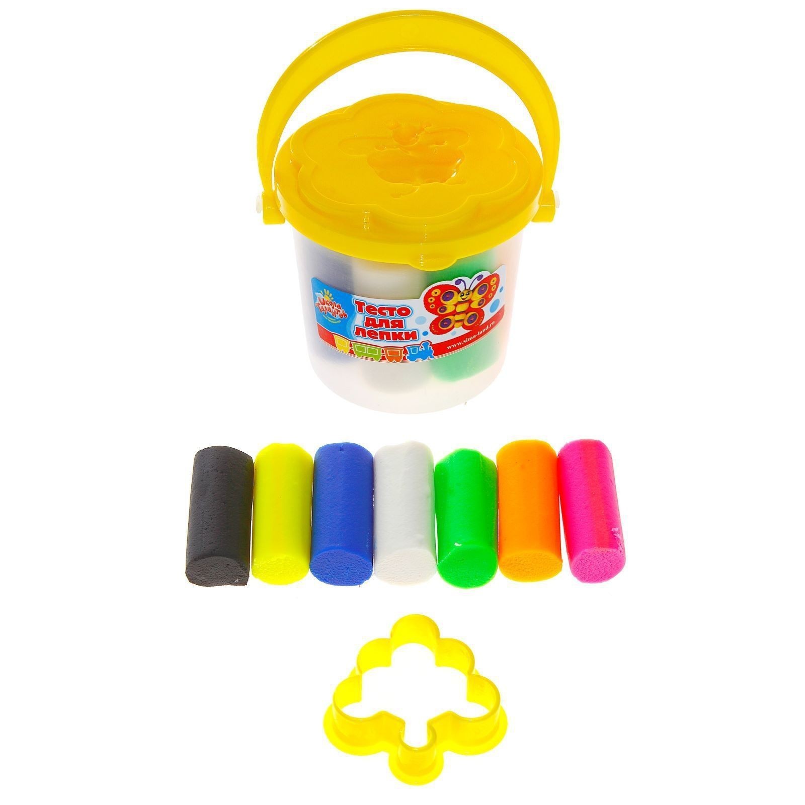 Тесто для лепки 7 цветов, 105 гр, 1 формочка, крышка - формочка, микс