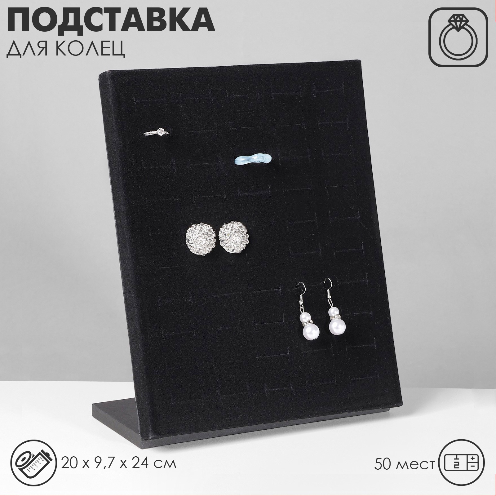 Подставка под кольца Qf, 50 мест, флок, чёрная, 20 9.7 24 см