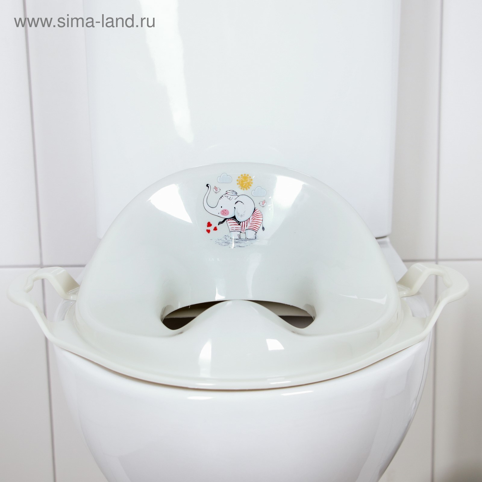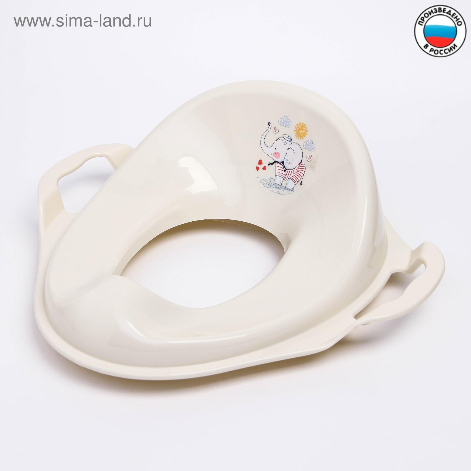 Накладка на унитаз детская «слоник». Цвет: Бежевый Для кого: Унисекс Размер, см: 36 х 40 С ручками: Да Высота, см: 13 Возраст: От 1 года parts count: 0 Материал: Пластик Антискользящие накладки: Нет Тип: Детские сиденья Со ступенькой: Нет Температурное ограничение: Нет Мягкая накладка: Нет Размер отверстия, см: 18 х 13  развернуть описание ▼