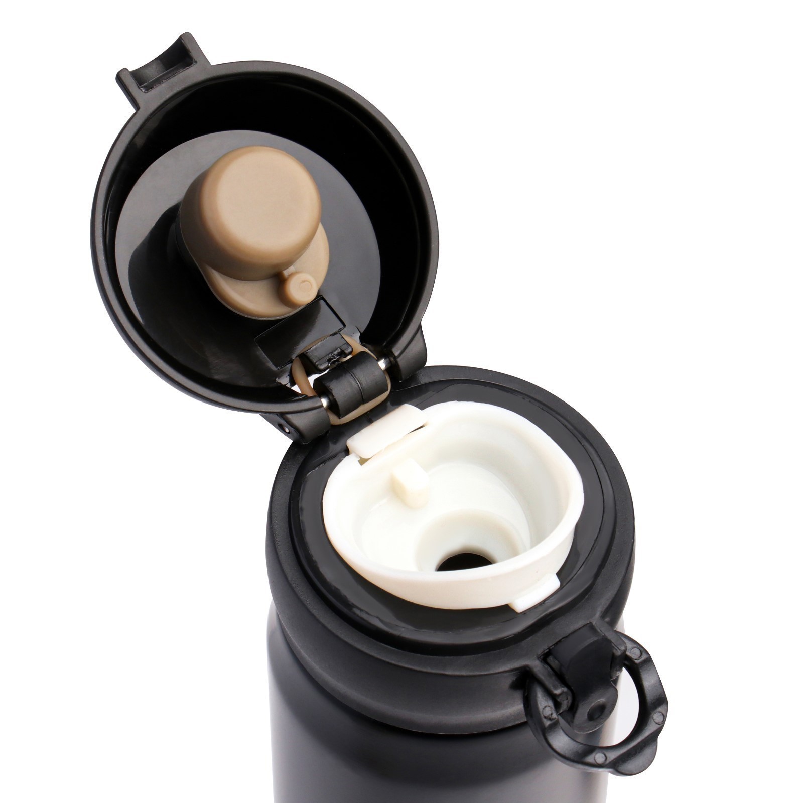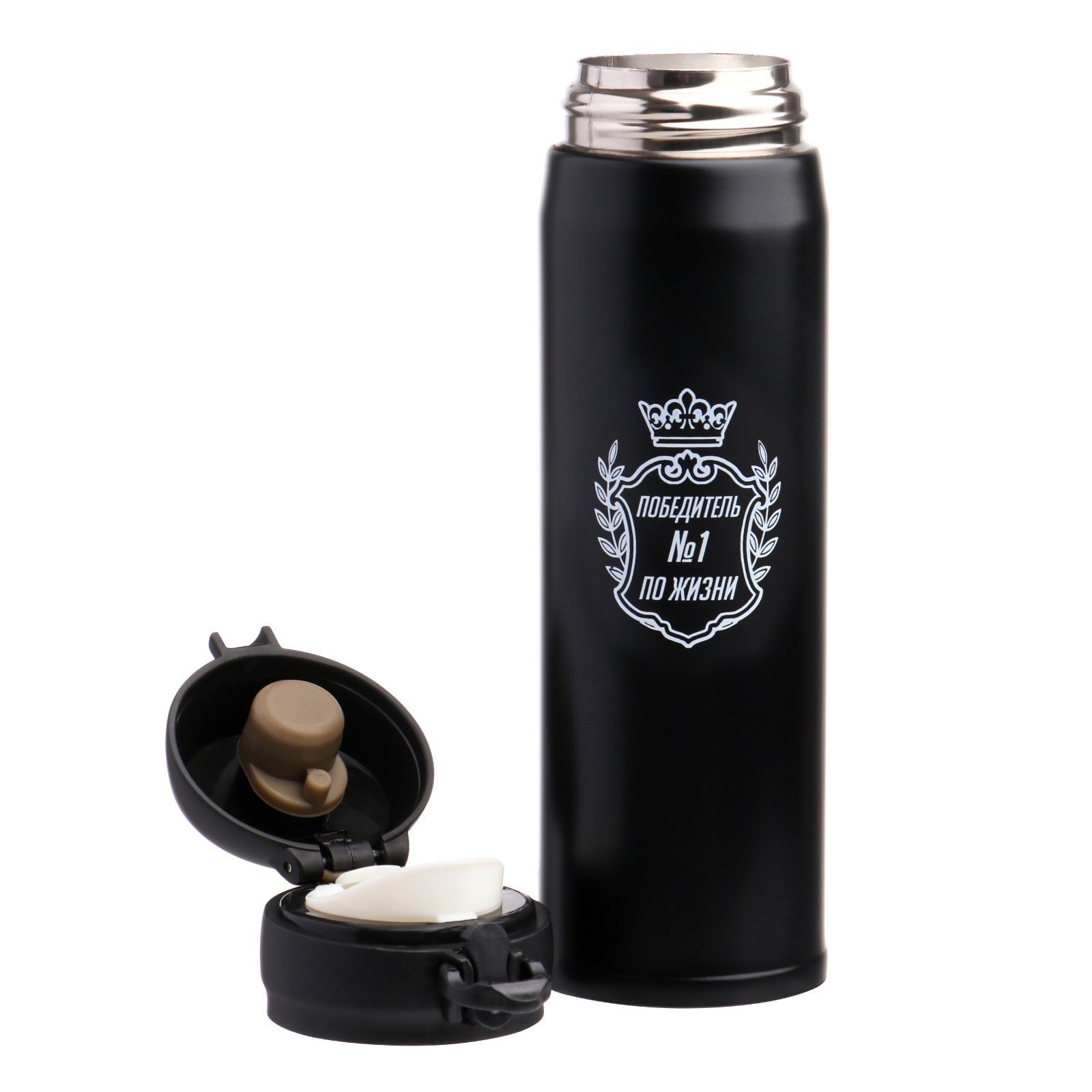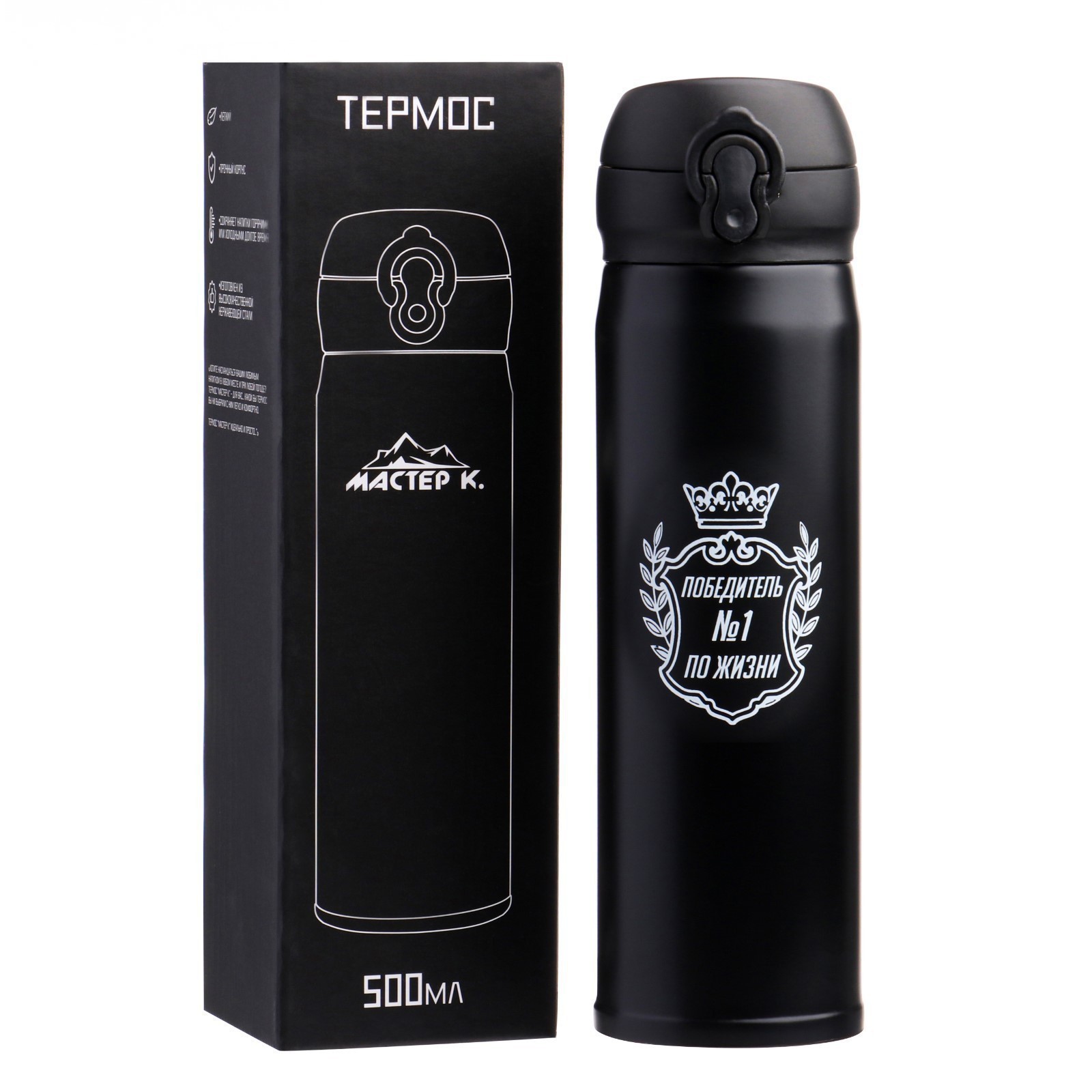 Термос, 420 мл, топ "мастер к. победитель", сохраняет тепло 8 ч, 7 х 22 см. Термос (термокружка) для кофе и чая "Мастер К" идеален для офиса, автомобиля, длительных прогулок и детям в школу. Термос отлично подходит для автомобильных держателей. Благодаря специальному покрытию, надежно лежит в руке. Компактный, экологичный, стильный. Термосы этой серии пользуются большой популярностью у активных и динамичных пользователей, а так же у любителей охоты и рыбалки, так как они, сохраняют прочность и термоустойчивость, легки и компактны. Этот термос просто идеально подойдет для тех, кто ценит свое время и хочет наслаждаться свежим и горячим кофе, чаем или другими любимыми напитками в любой ситуации. Термос "Мастер К" 500 мл (0. 5 л) это яркое решение для любителей чая, кофе, травяных, ягодных и фруктовых заварок. Летом данный термос станет приятным спутником на пляж и в жаркий день, так как он сохраняет напиток холодным. Термос "Мастер К" - это стильный аксессуар и отличный подарок на новый год, другу, подруге, брату, сестре, девушке, папе, маме, мужу, жене, бабушке и дедушке на день рождения, 23 февраля, 8 марта, 14 февраля. Термос (термокружка) сделан из нержавеющей стали 18/8, сконструирован по вакуумной технологии, с двойной стенкой, следовательно, долго держит тепло и не проливается. Снабжен откидывающейся крышкой, изготовленной из экологичного пищевого пластика, имеется кнопка, позволяющая с легкостью использовать термос одной рукой. Удобно: открывать и закрывать одной рукойдержать одной рукой за счет эргономичного дизайнаставить в автомобильный подстаканникпомещать в сумку, рюкзакпить, имеется эргономичный поильник Цвет: Чёрный Для кого: Для мужчины parts count: 0 Объём, л: 0.5 Время сохранения тепла/холода, ч: 8 tnved: 9617000001 Материал корпуса: Нержавеющая сталь Материал: Силикон Материал: Пластик Материал: Нержавеющая сталь Тип горлышка: Стандартное Назначение: Для напитков Материал колбы: Металл Особенности: Вакуумный Особенности: С кнопкой  развернуть описание ▼