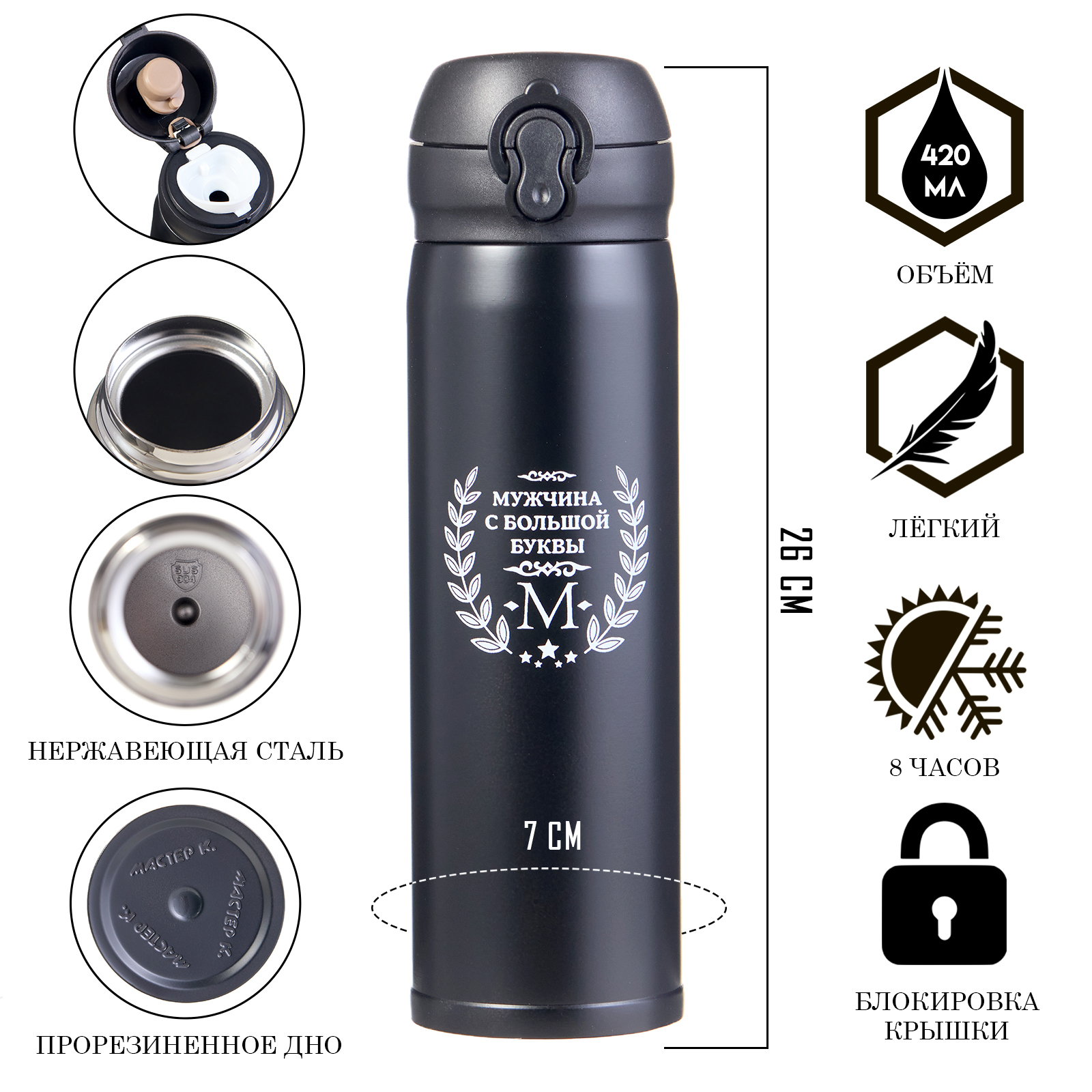 Термос, 420 мл, топ "мужчина с большой буквы", сохраняет тепло 8 ч, 7 х 26 см
