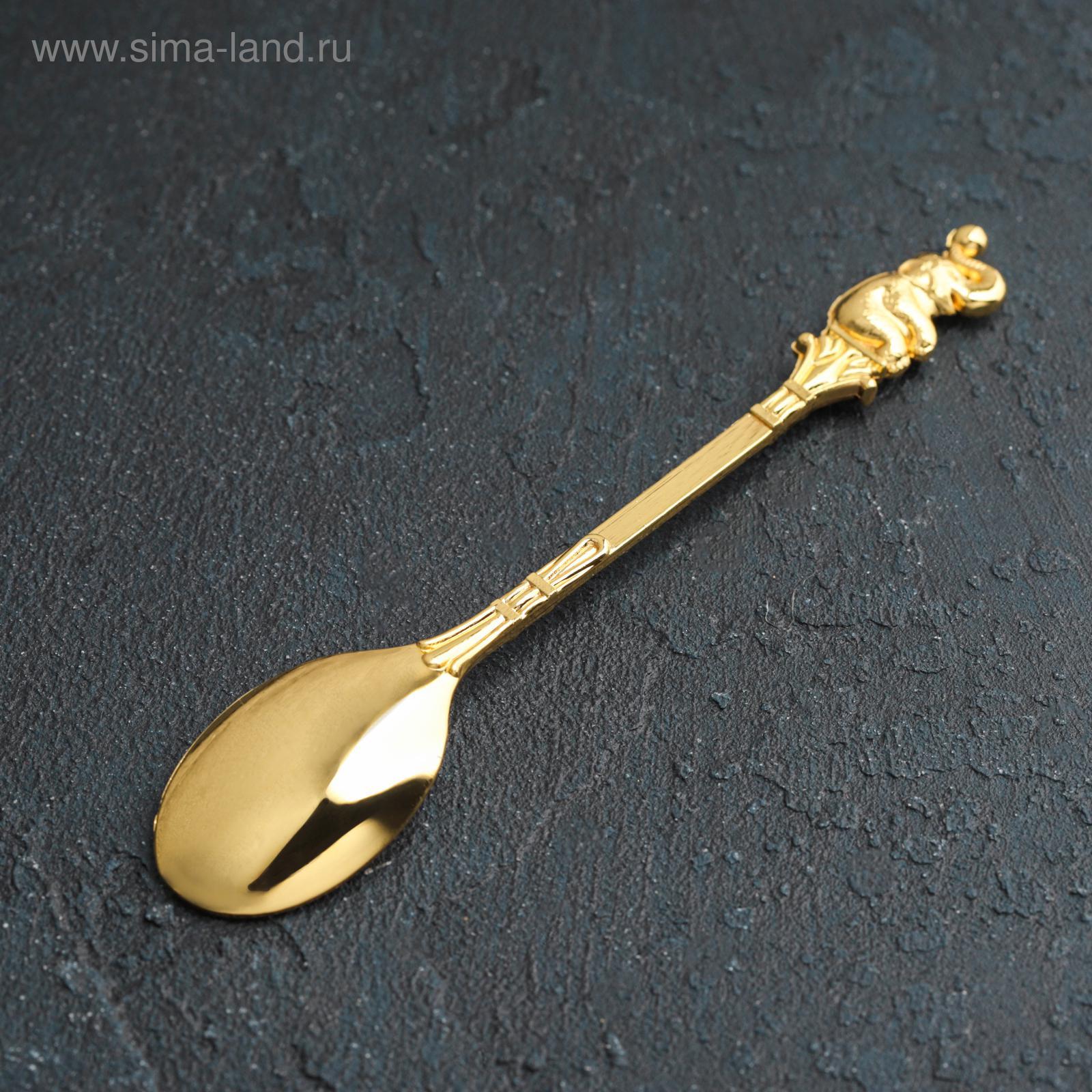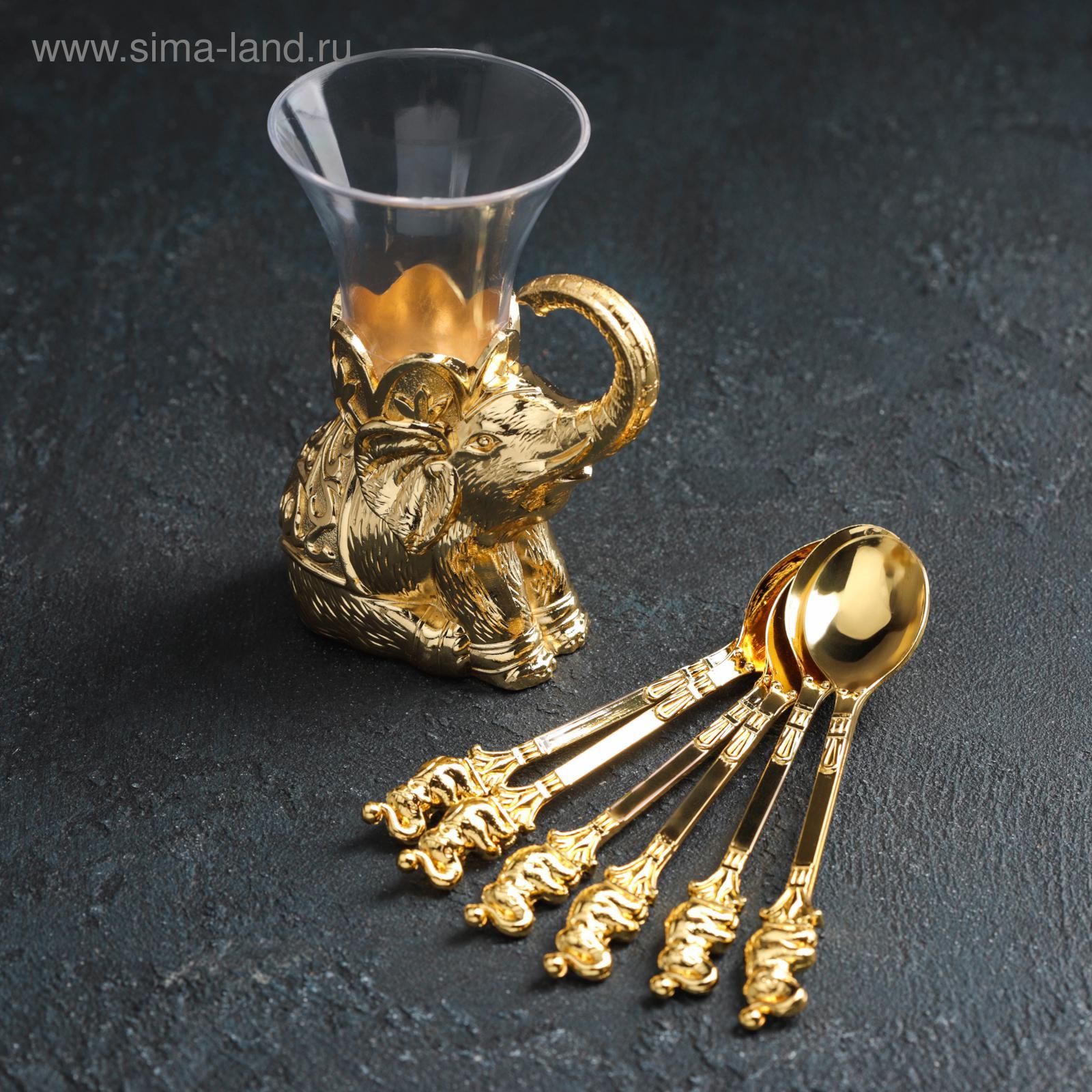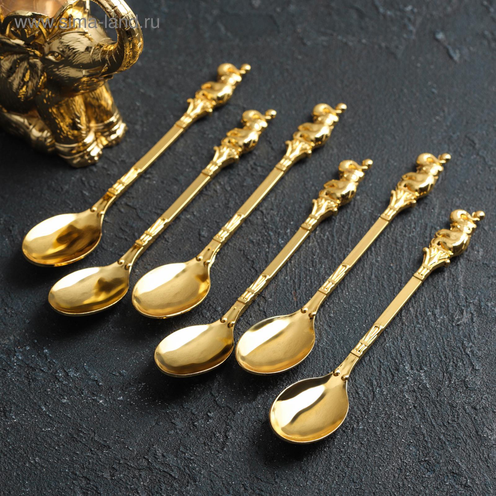 Набор ложек на подставке «слон», 8x4x16 см , ложки H=12 см, 6 шт, цвет золотой