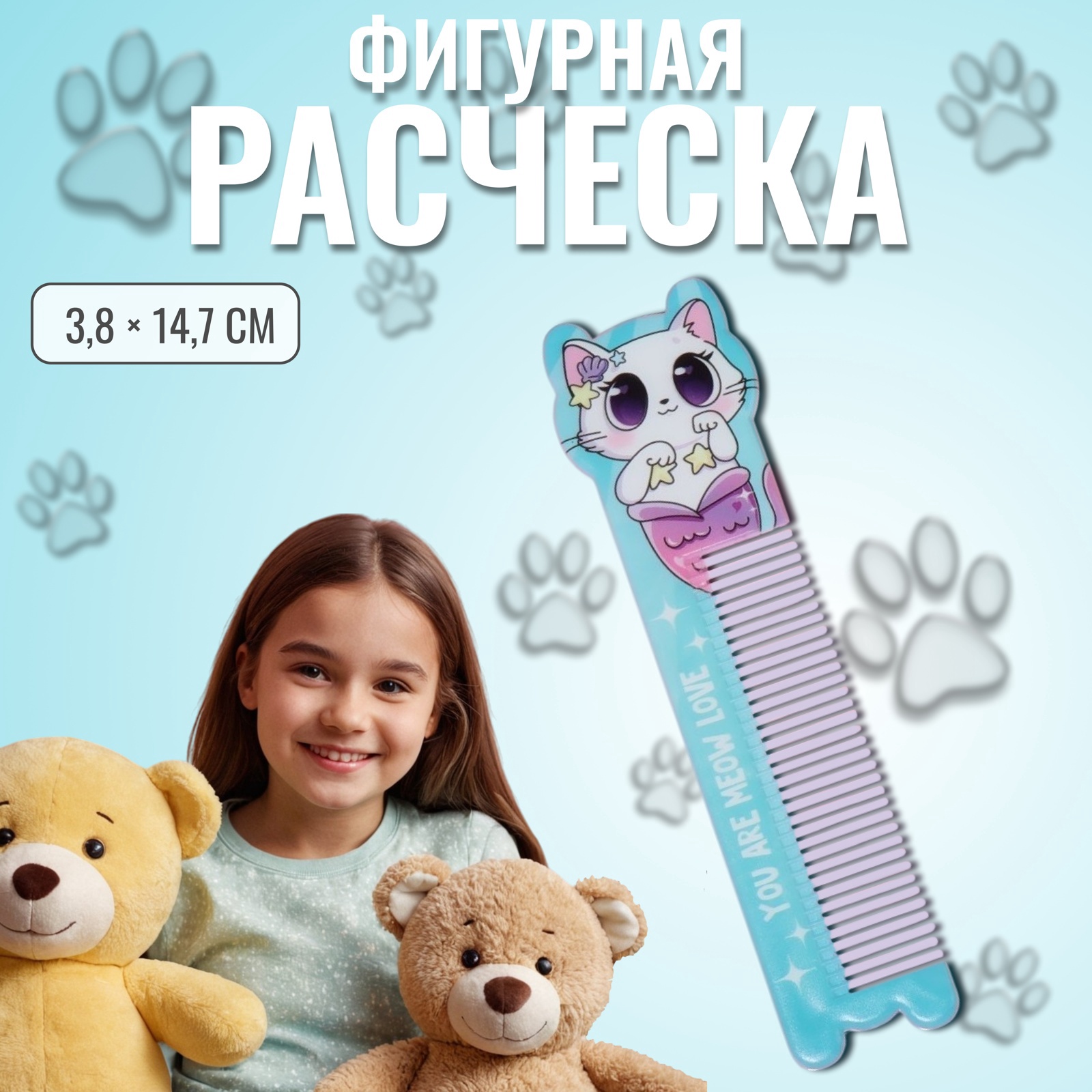 Расчёска фигурная «кошка-русалка», 14.7 3.8(±1) см. Откройте для себя очаровательный мир фигурных расчёсок, который порадует девочек необычным дизайном. Эта простая расческа станет вашим ключом к легкому и приятному уходу за волосами. Изготовленная из качественного пластика, она идеально подходит для нежного расчесывания, а ее размеры 14.7 3.8 см делают ее удобной для повседневного использования. Особенности Дизайн: привлекательный рисунок очаровательной Кошки-русалки станет украшением вашей косметички. Цвет: нежный голубой оттенок добавит свежести вашему настроению. Материал: пластик высокого качества обеспечивает долговечность и легкость продукта.На каждый день Этот уникальный гребень не только радует глаз, но и делает заботу о волосах простой и эффективной. Идеальный размер позволяет брать его с собой куда угодно, а легкость продукта обеспечивает непревзойденный комфорт в использовании. Подарите себе и своим близким практичность с оттенком сказки! Набор:Нет|Цвет:Голубой|Детские:Нет|Рисунок:Да|Материал:Пластик|Тип расчёски:Простая|Страна:Китай  развернуть описание ▼