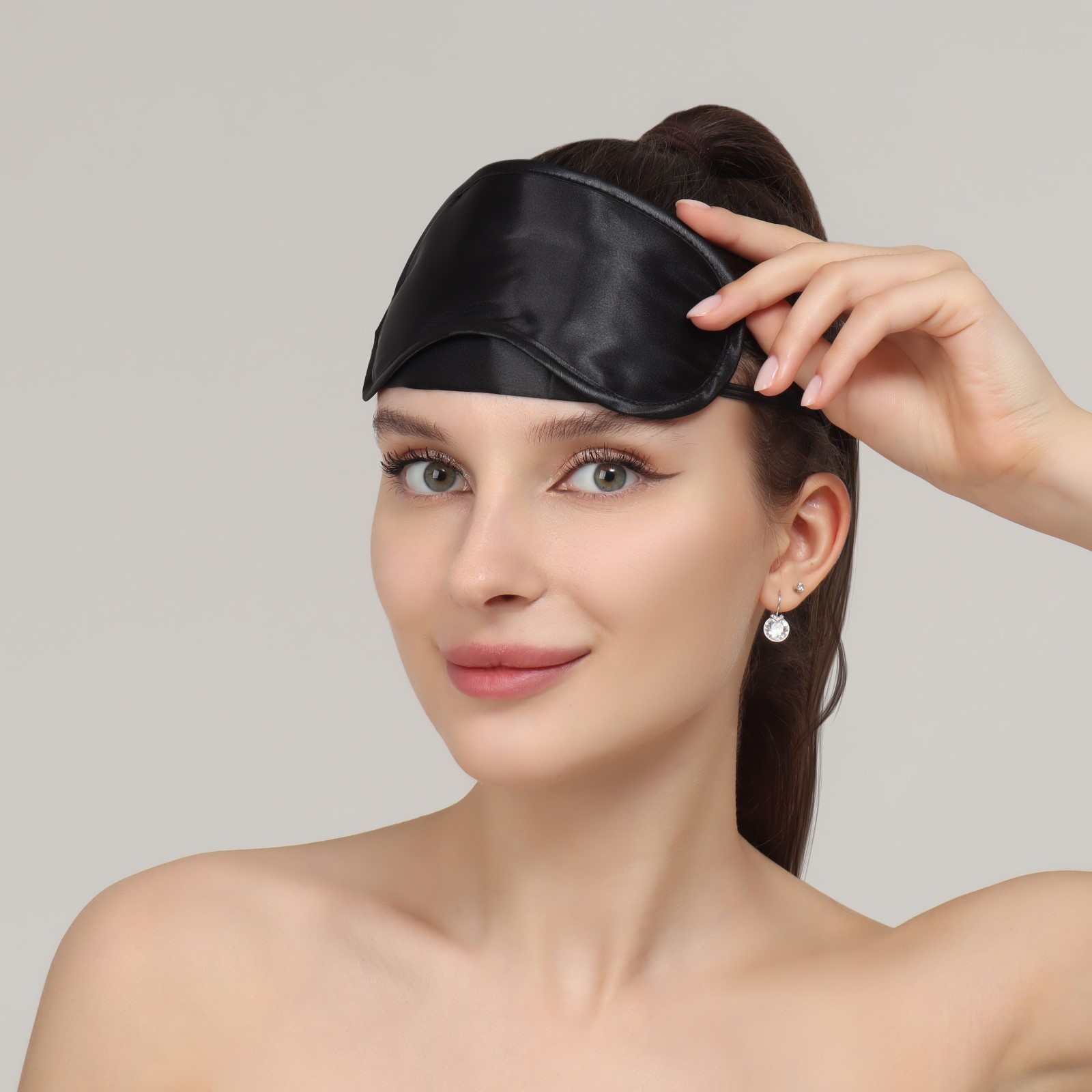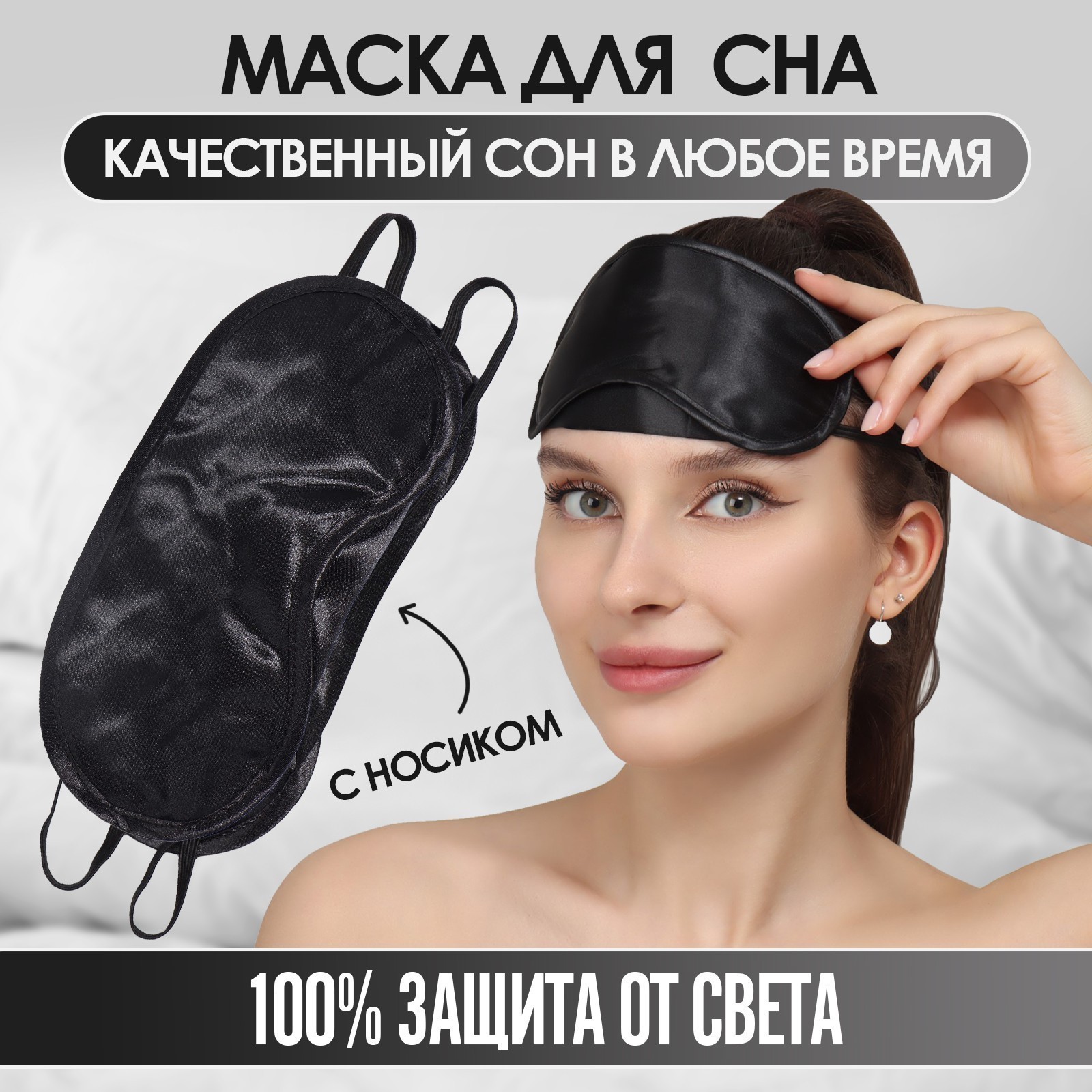 Маска для сна, сатиновая, с носиком, двойная резинка, 19 X 8,5 см, цвет чёрный