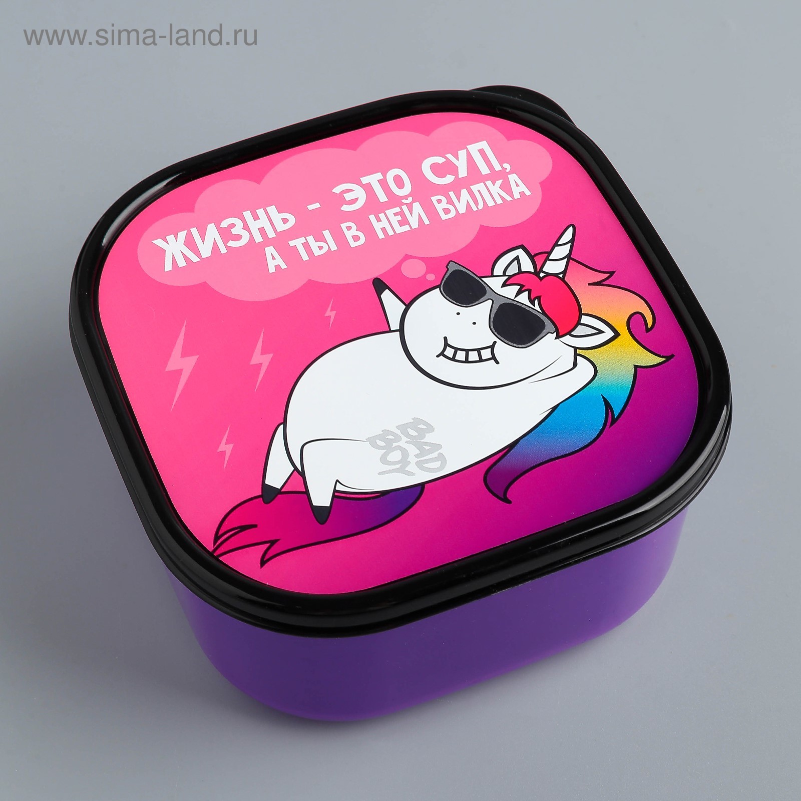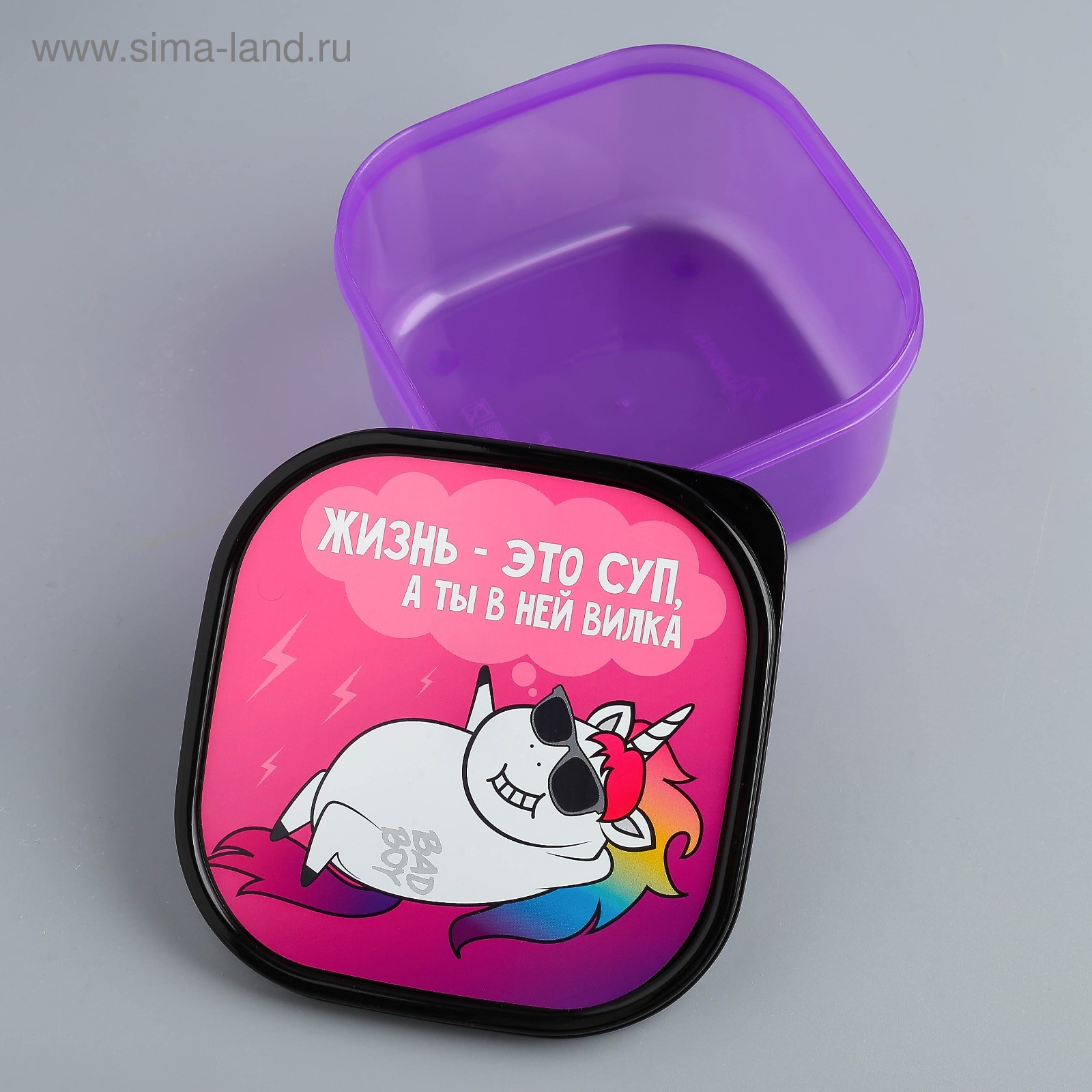 Ланч-бокс «единорог», 700 мл. Ланч-бокс от торговой марки FoodVibes - это удобное и практичное решение для переноса и хранения пищи. Изготовленный из полипропилена, материала, известного своей прочностью и долговечностью, этот ланч-бокс гарантирует долгий срок службы. Размеры ланч-бокса составляют 6, 5 см х 12, 5 см х 12, 5 см а его вес - всего 75 г. Квадратная форма и объем в 700 мл обеспечивают достаточно места для хранения различных видов пищи, делая его идеальным для обеда или перекуса. Особенностью этого ланч-бокса является герметичная крышка, которая предотвращает проливание и сохраняет свежесть продуктов. В дополнение к этому, ланч-бокс можно использовать в СВЧ-печи, что делает его удобным для подогрева пищи. FoodVibes - это торговая марка, известная своим качеством и надежностью. Их ланч-бокс - это не только удобный аксессуар для переноса пищи, но и стильный элемент, который подчеркнет вашу индивидуальность. Цвет: Фиолетовый Форма: Квадратная parts count: 0 Объём, л: 0.7 Объём, мл: 700 tnved: 3924900009 Материал: Пластик Герметичная крышка: Да Наличие столовых приборов: Нет Можно мыть в посудомоечной машине: Да Можно использовать в СВЧ-печи: Да Форма: Квадрат, куб  развернуть описание ▼