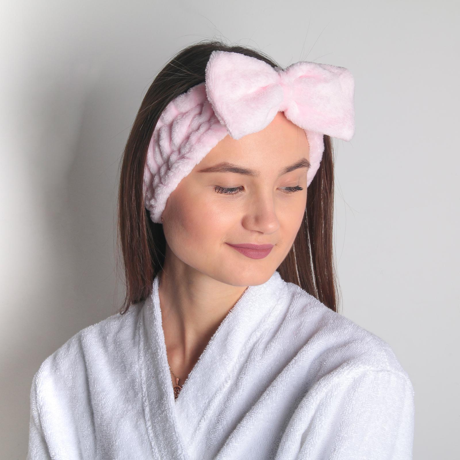 Повязка для умывания «бантик», цвет микс. Повязка на голову помогает убрать и зафиксировать волосы во время нанесения масок, макияжа или косметологических процедур. Преимущества: Мягкий материал не причиняет дискомфорта. Защищает волосы от очищающих и увлажняющих средств. Не заламывает локоны. Цвет: МИКС Материал: Микрофибра Состав ткани: Микрофибра  развернуть описание ▼