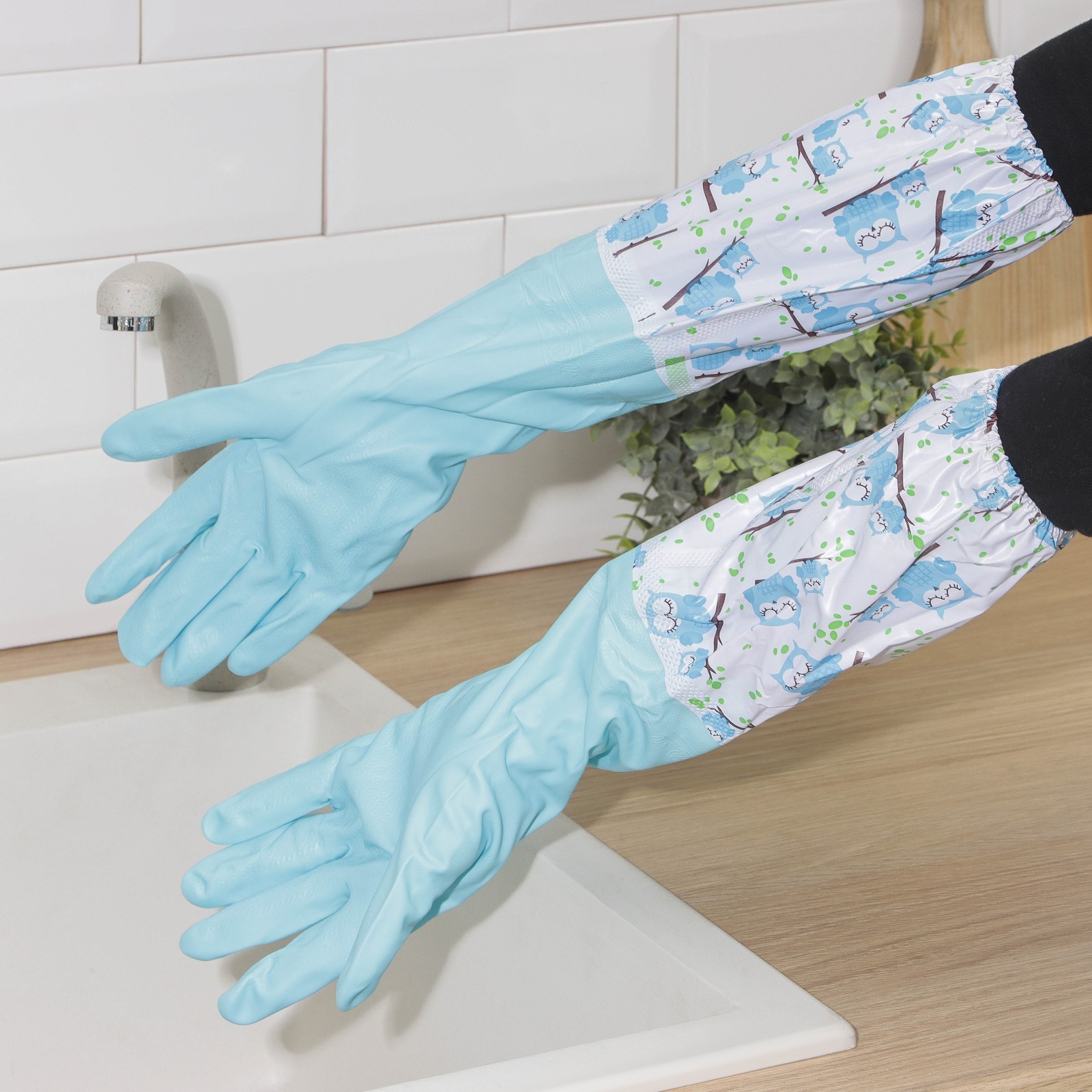 Перчатки хозяйственные с утеплителем доляна, размер L, 45 см, пвх, длинные манжеты, рисунок микс