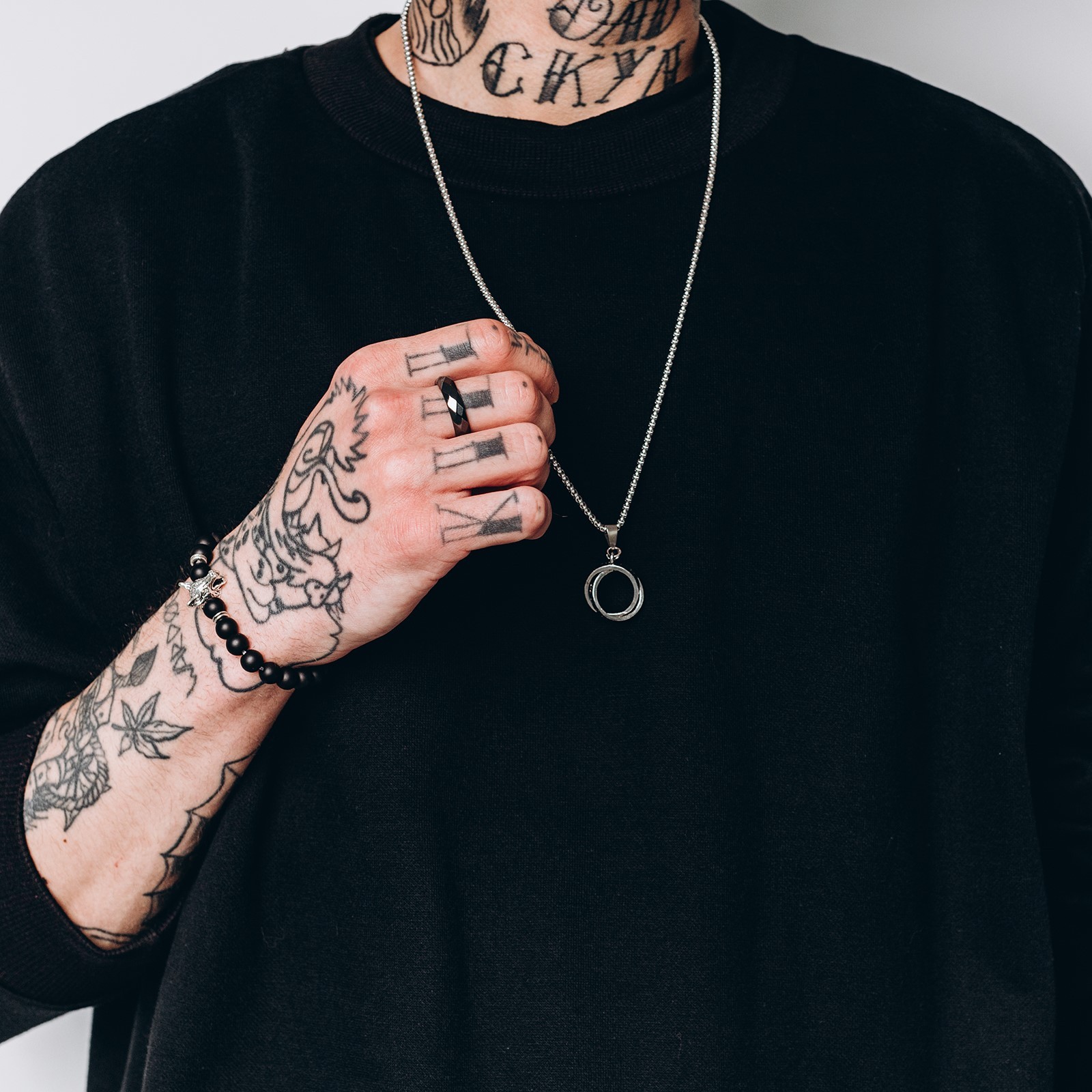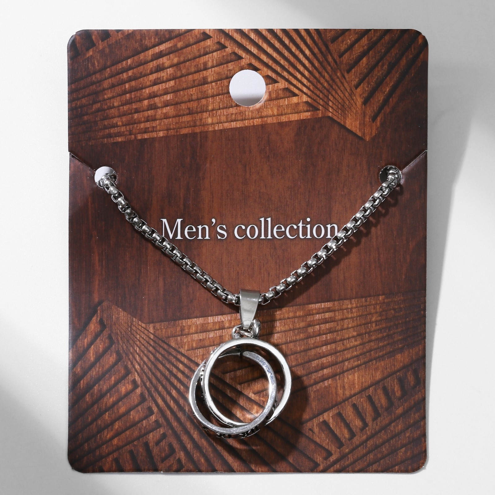 Мужской кулон, «викинг» переплетение колец, цвет чернёное серебро, 60 см