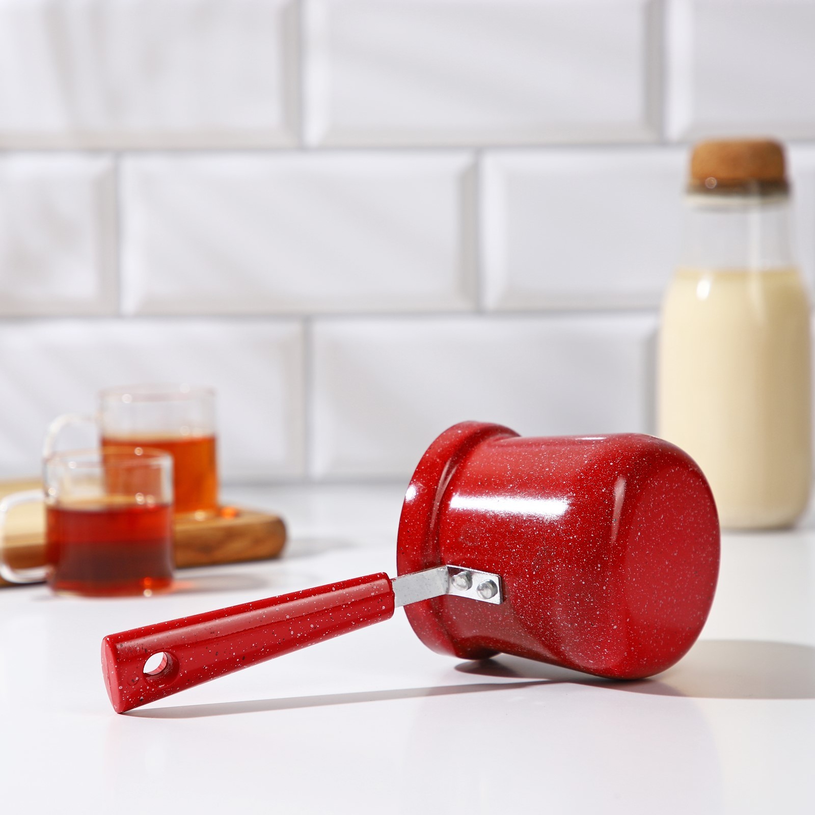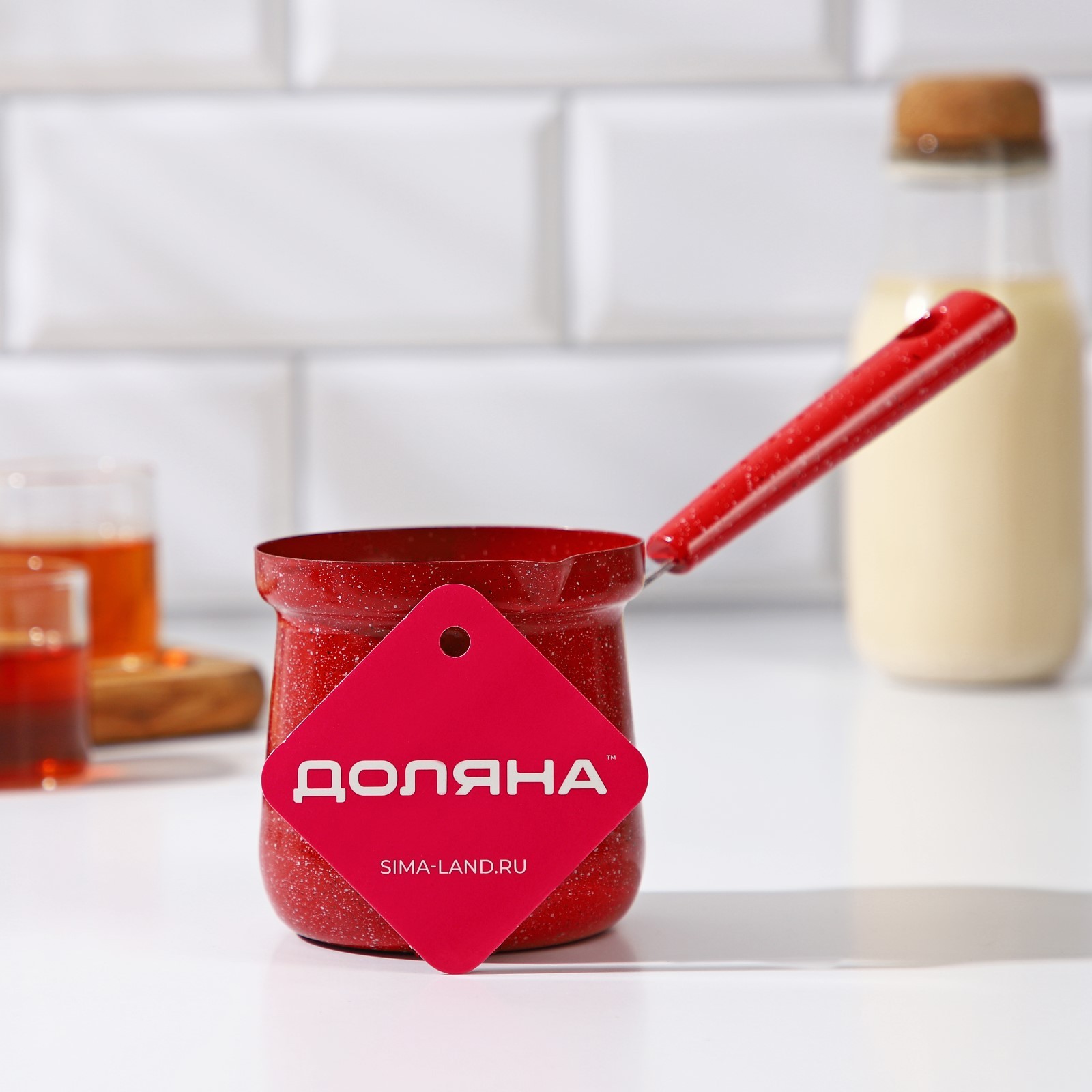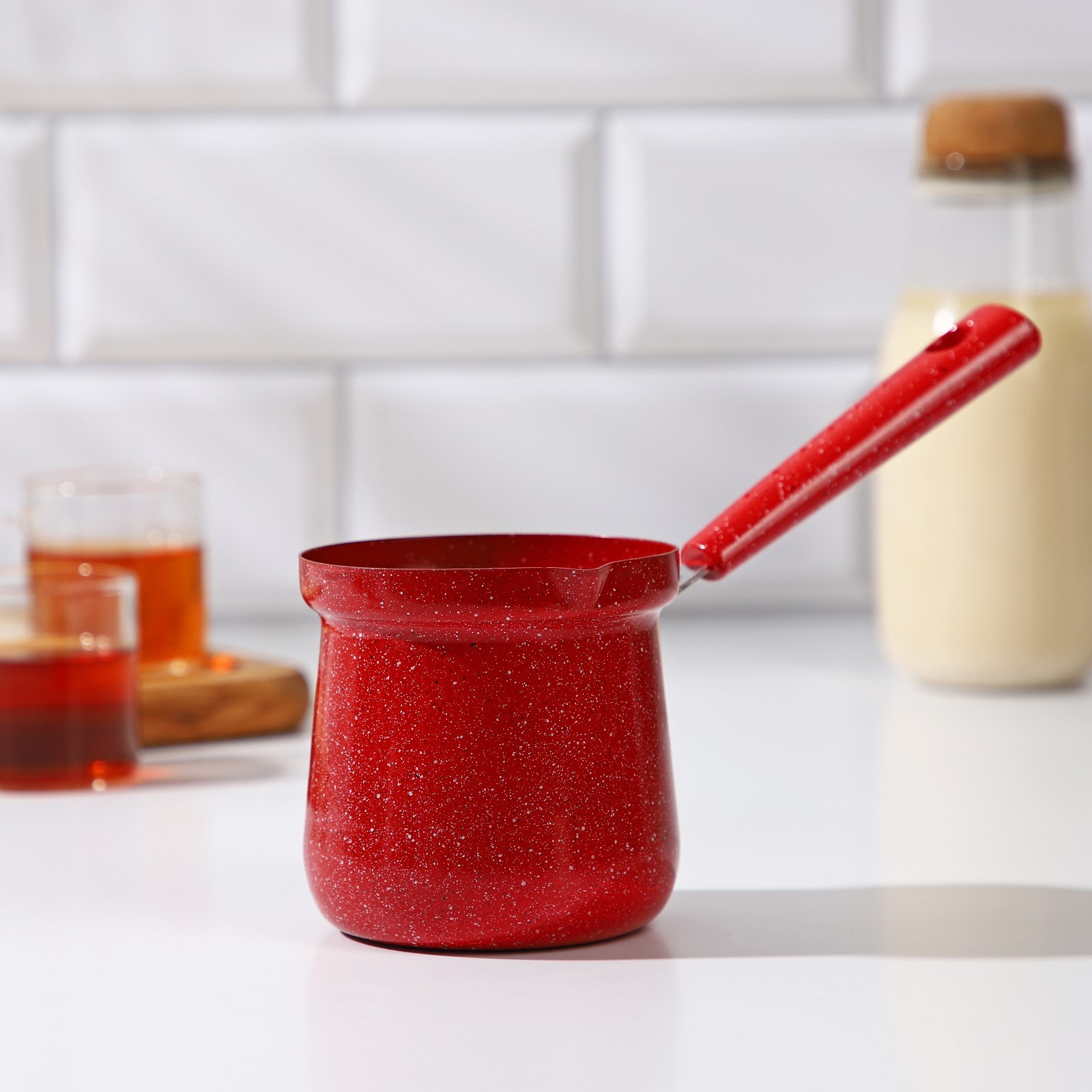 Турка доляна «мрамор рэд», 400 мл, D=8 см, пластиковая ручка, антипригарное покрытие, индукция, цвет красный