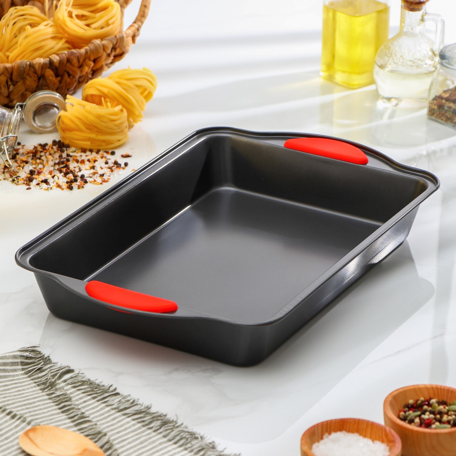 Противень для выпечки доляна «софт. прямоугольник», 40,5x25,5x5,5 см, с силиконовыми ручками, антипригарное покрытие, цвет чёрны