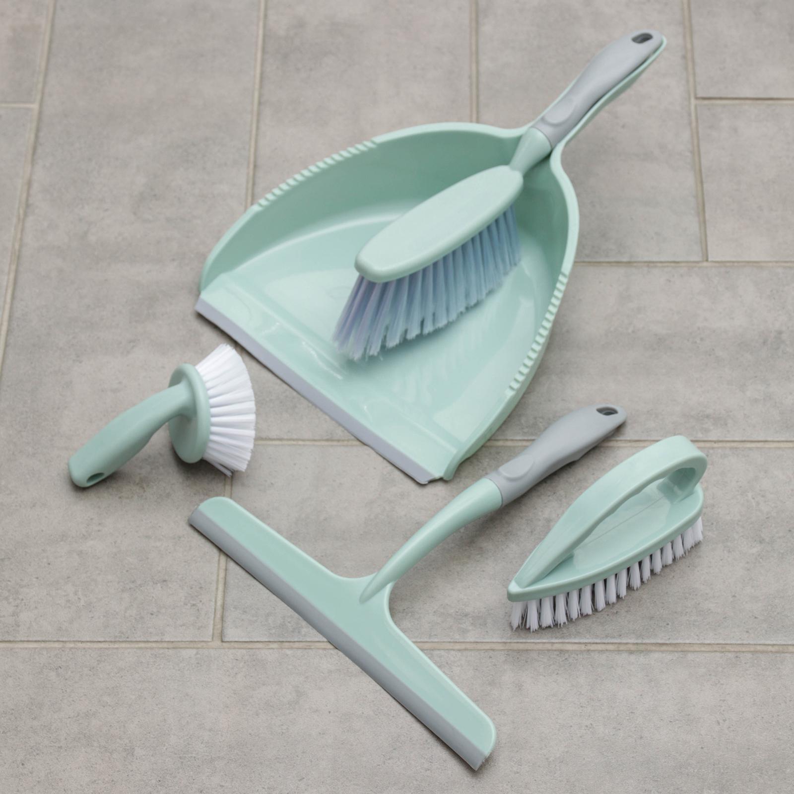 Набор для уборки, 5 предметов: совок, 3 щётки, водосгон, цвет микс. Многофункциональный компактный набор предназначен для быстрой и качественной уборки. Преимущества: Хозяйственный комплект для уборки не занимает много места. Щетка для уборки предназначена для удаления загрязнений с различных поверхностей. Ее щетинки средней жесткости изготовлены из прочного материала, что позволяет легко и быстро осуществлять чистку. Пластиковый совок прочный, устойчивый к сколам и трещинам, поэтому прослужит вам длительное время. Водосгон может использоваться для мытья стекол, зеркал, перегородок, дверей, а также для очистки ванных кабин, пола и кухонных поверхностей. Такой хозяйственный набор существенно упростит процесс уборки дома. Цвет: МИКС С совком: Да parts count: 0 Длина ручки, см: 12 Материал: Пластик Резиновая кромка: Да  развернуть описание ▼