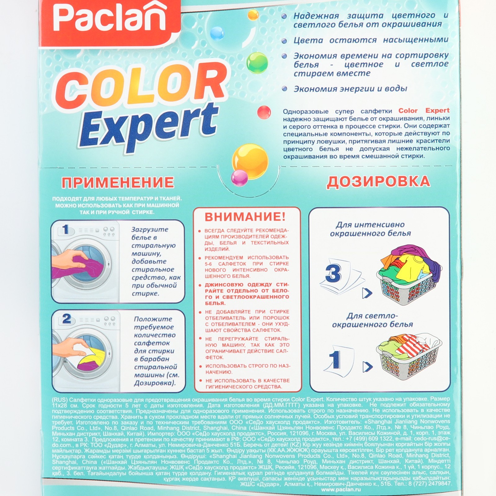 Активные салфетки для стирки, защита белья от окрашивания Paclan Color Expert, 20 шт.