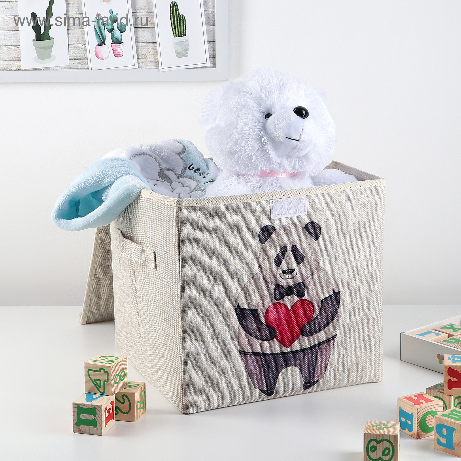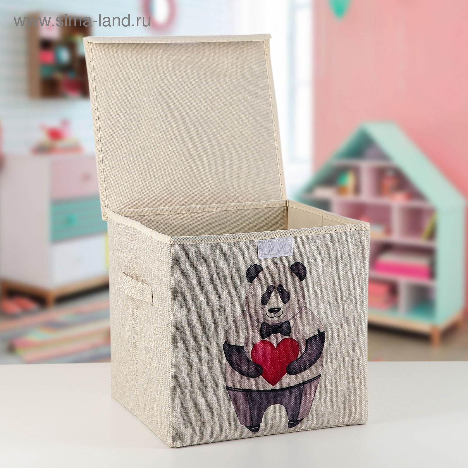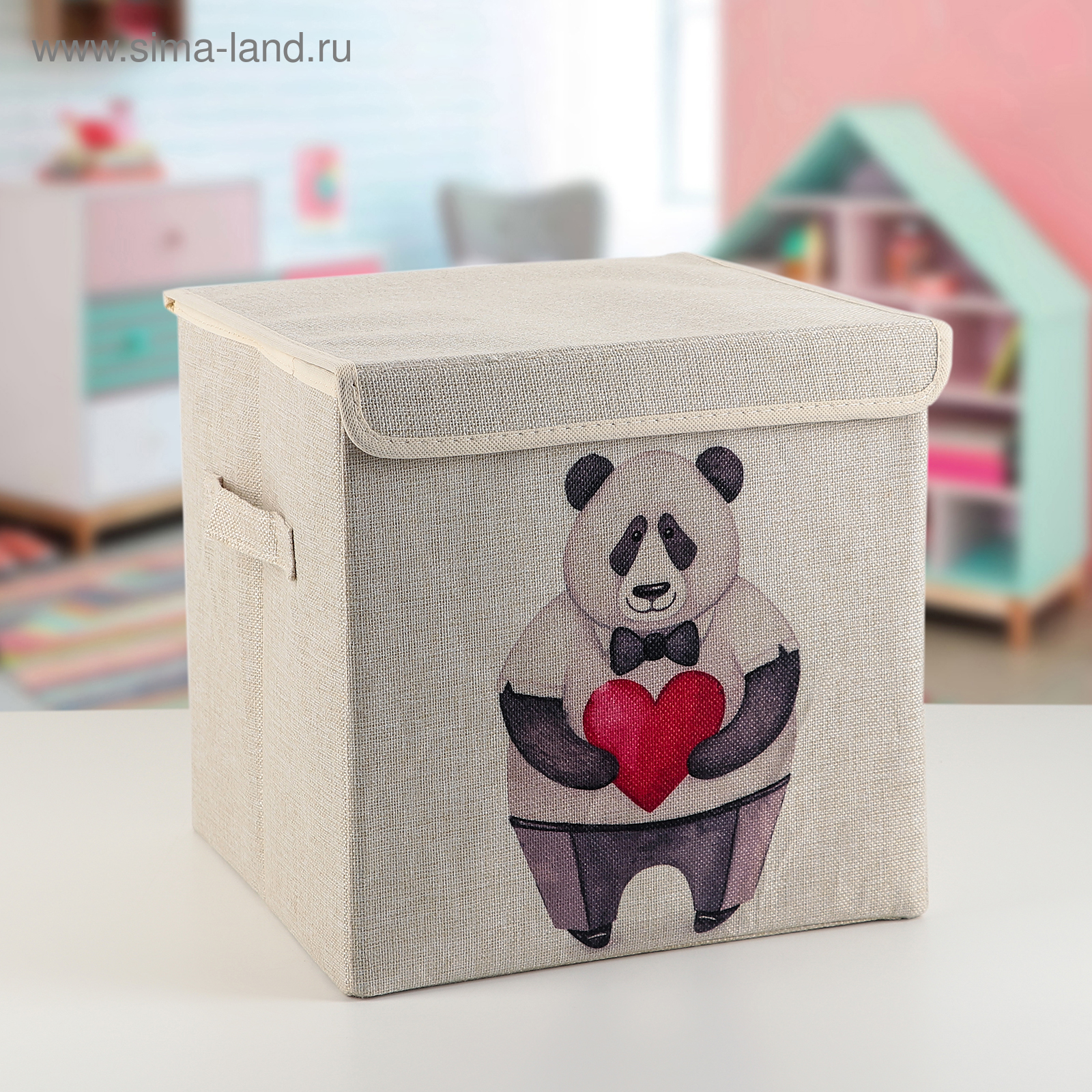 Короб стеллажный для хранения с крышкой «влюблённая панда», 30x30x28,5 см
