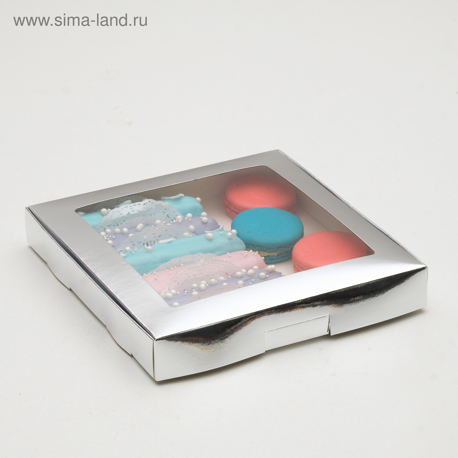 Коробка картонная, с окном, серебрянная, 21 х 21 х 3 см