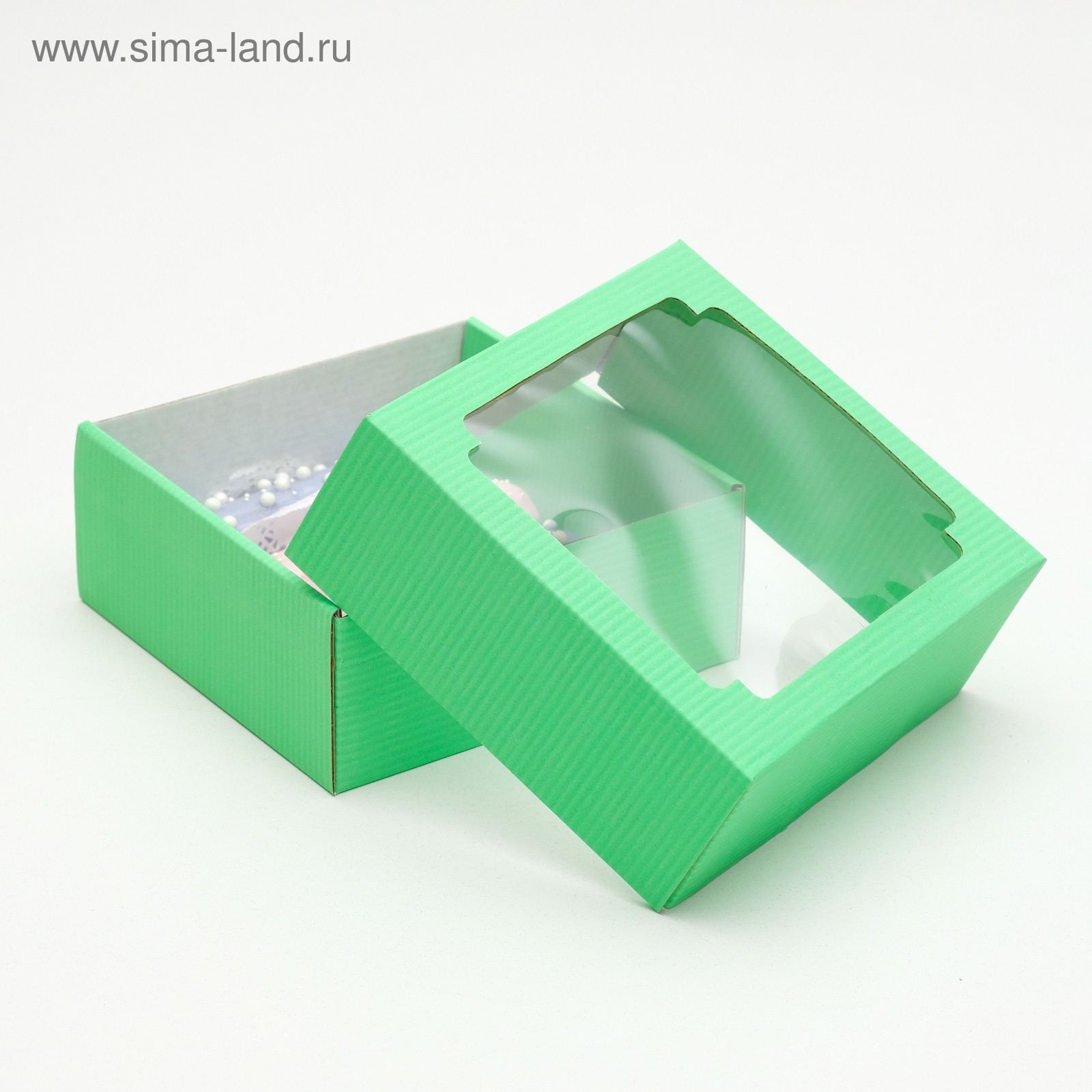 Коробка сборная, крышка-дно, с окном, мятная, 14,5 х 14,5 х 6 см