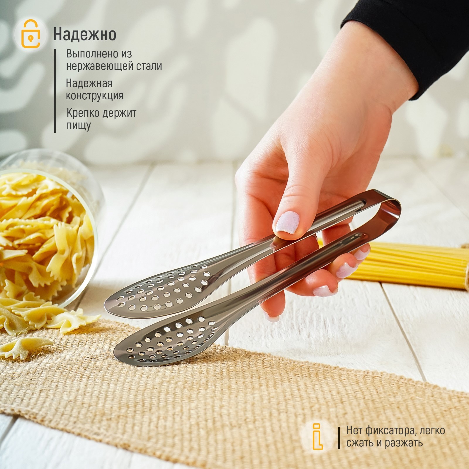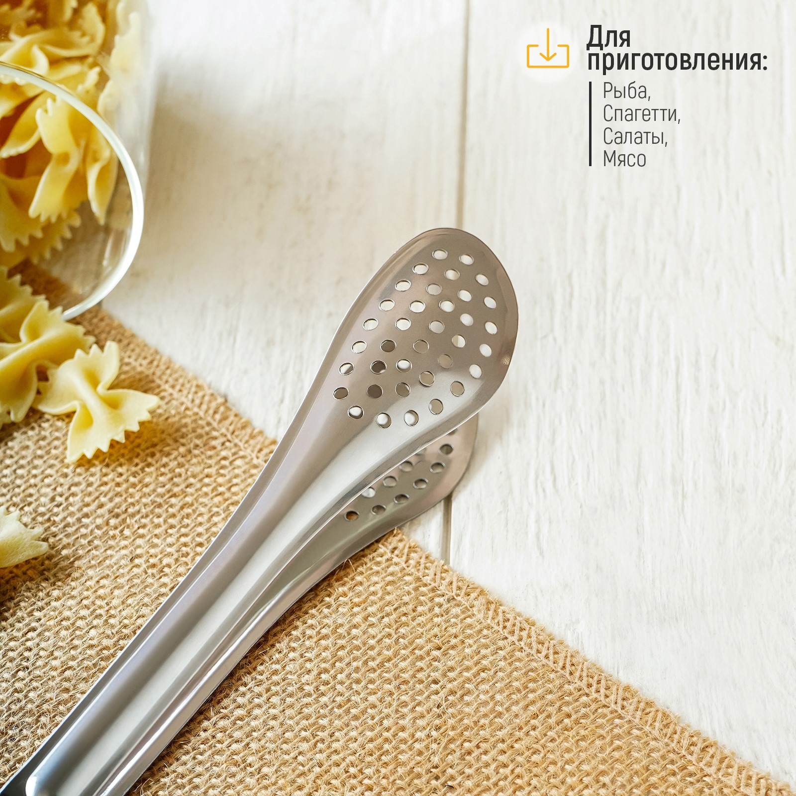 Щипцы кухонные с перфорацией доляна, 201 сталь, 18 см