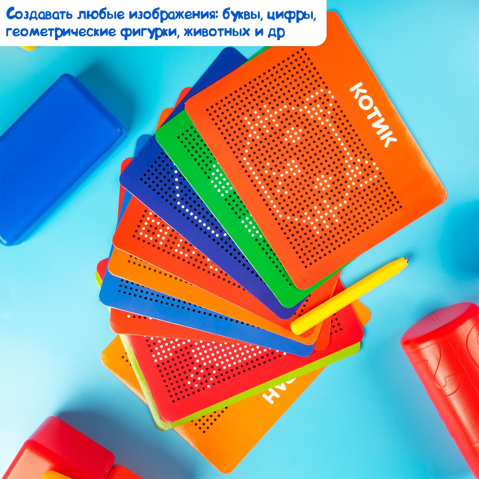 Планшет обучающий «магнитное рисование», большой, 714 шариков, 10 карточек, чёрный