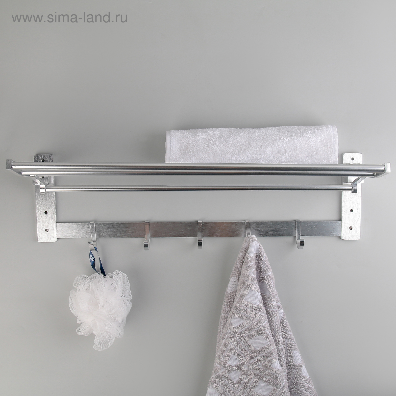 Полка откидная с держателем полотенец, 5 двигающихся крючков, 59,5x20,5x15 см, алюминий