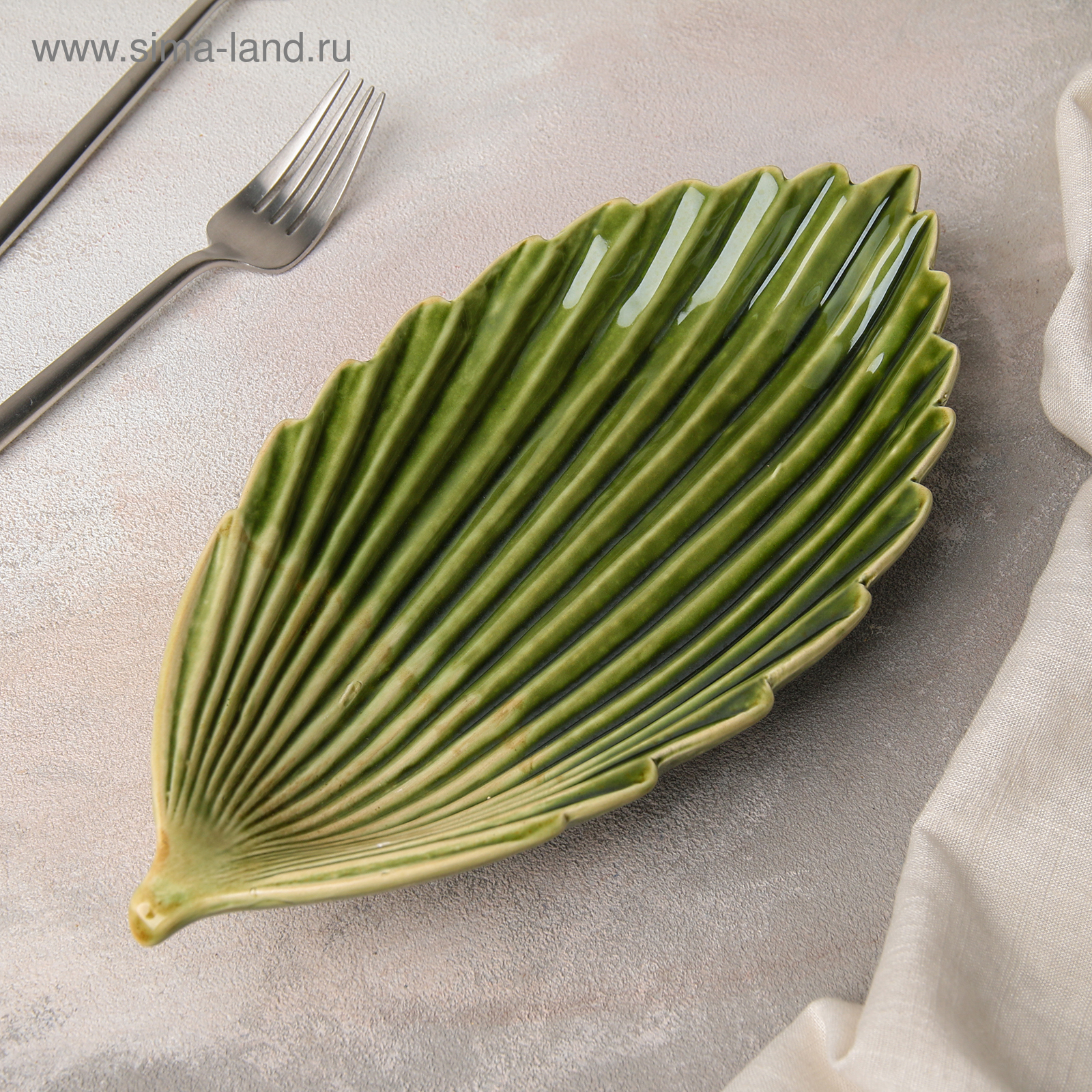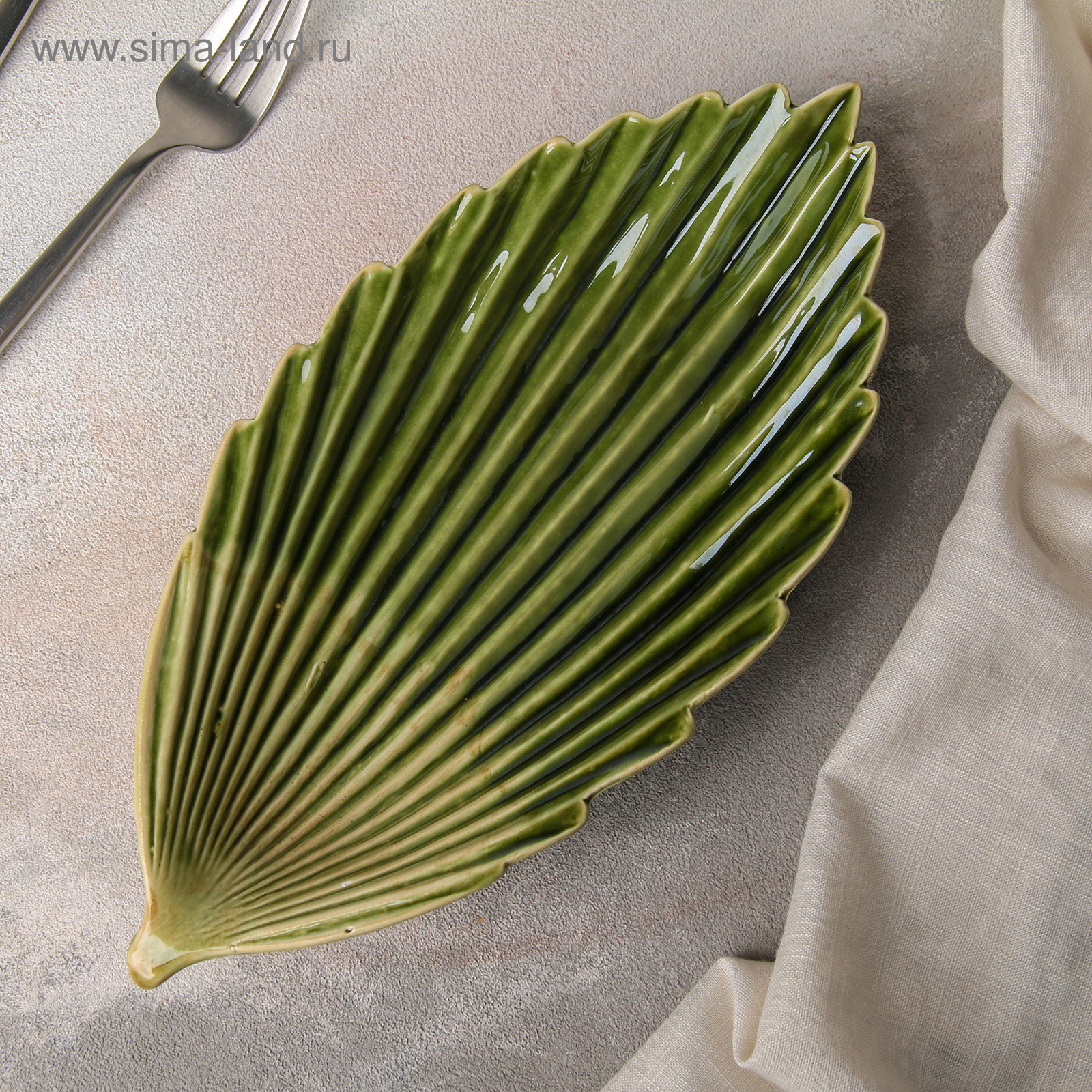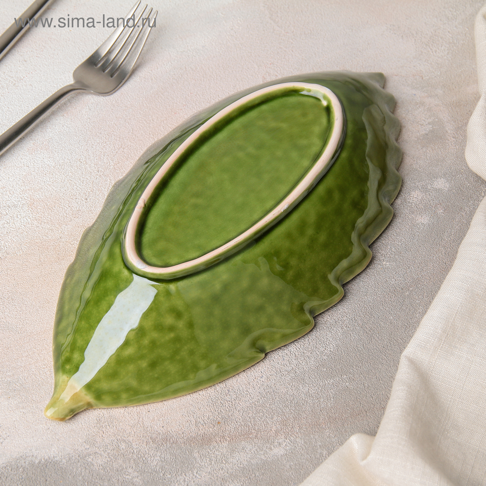 Блюдо керамическое сервировочное «дендрарий», 27x13x4 см, цвет зелёный
