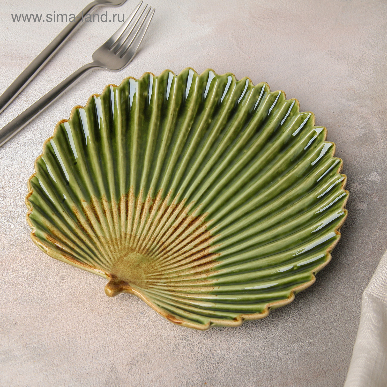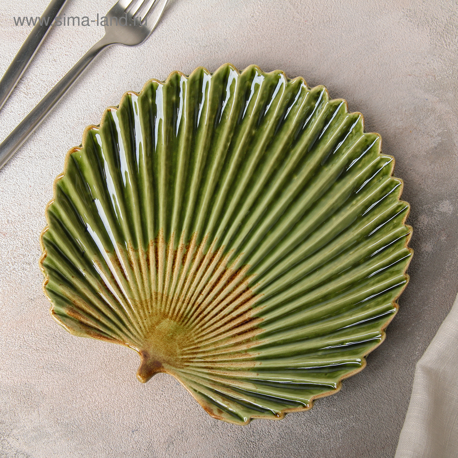 Блюдо керамическое сервировочное «дендрарий», 19,5x19x2 см, цвет зелёный