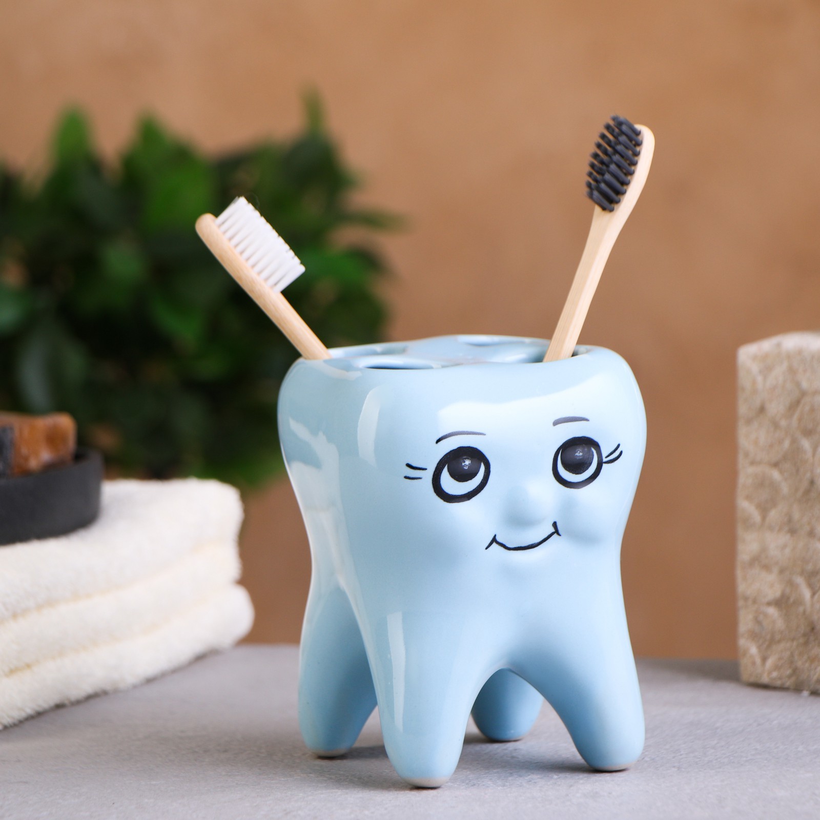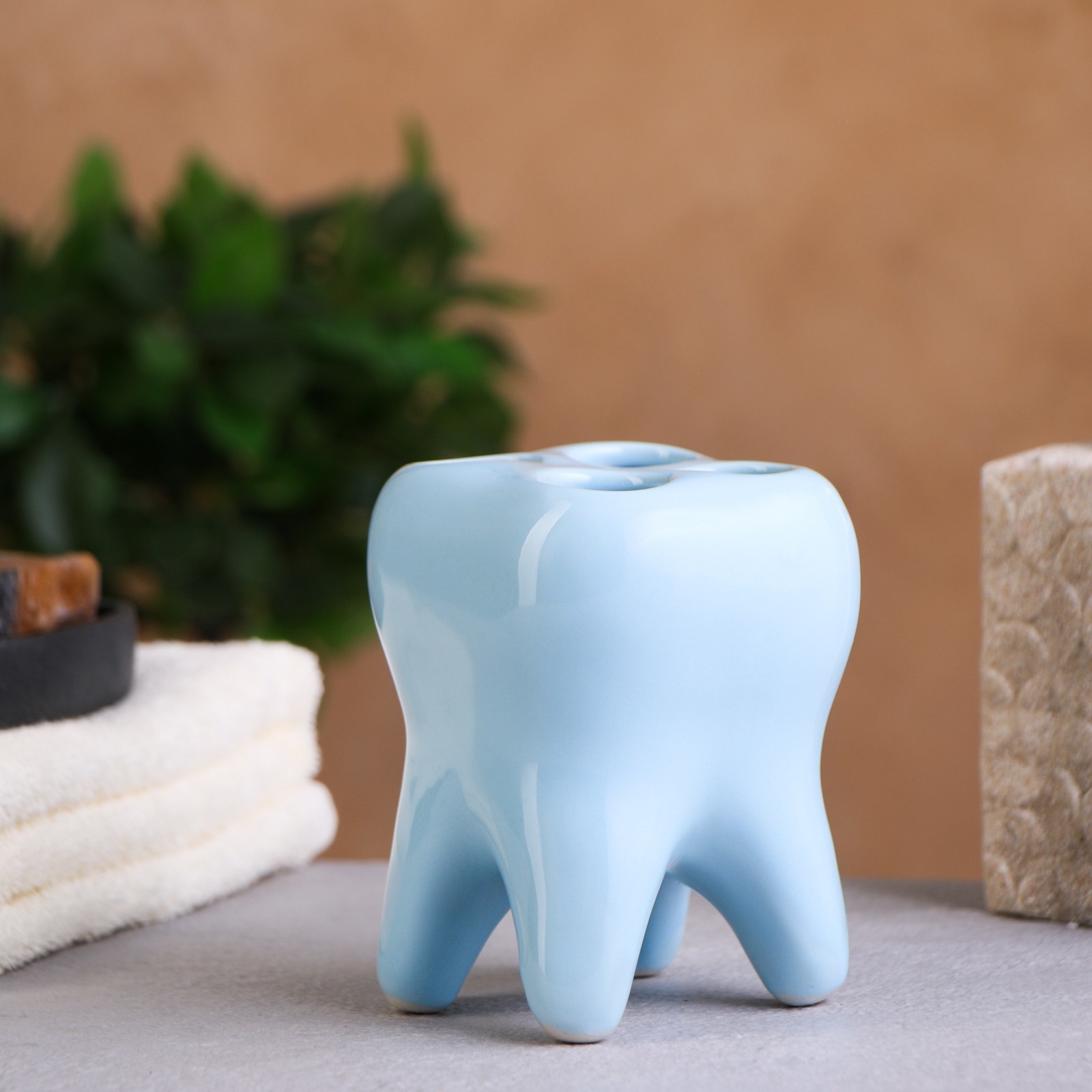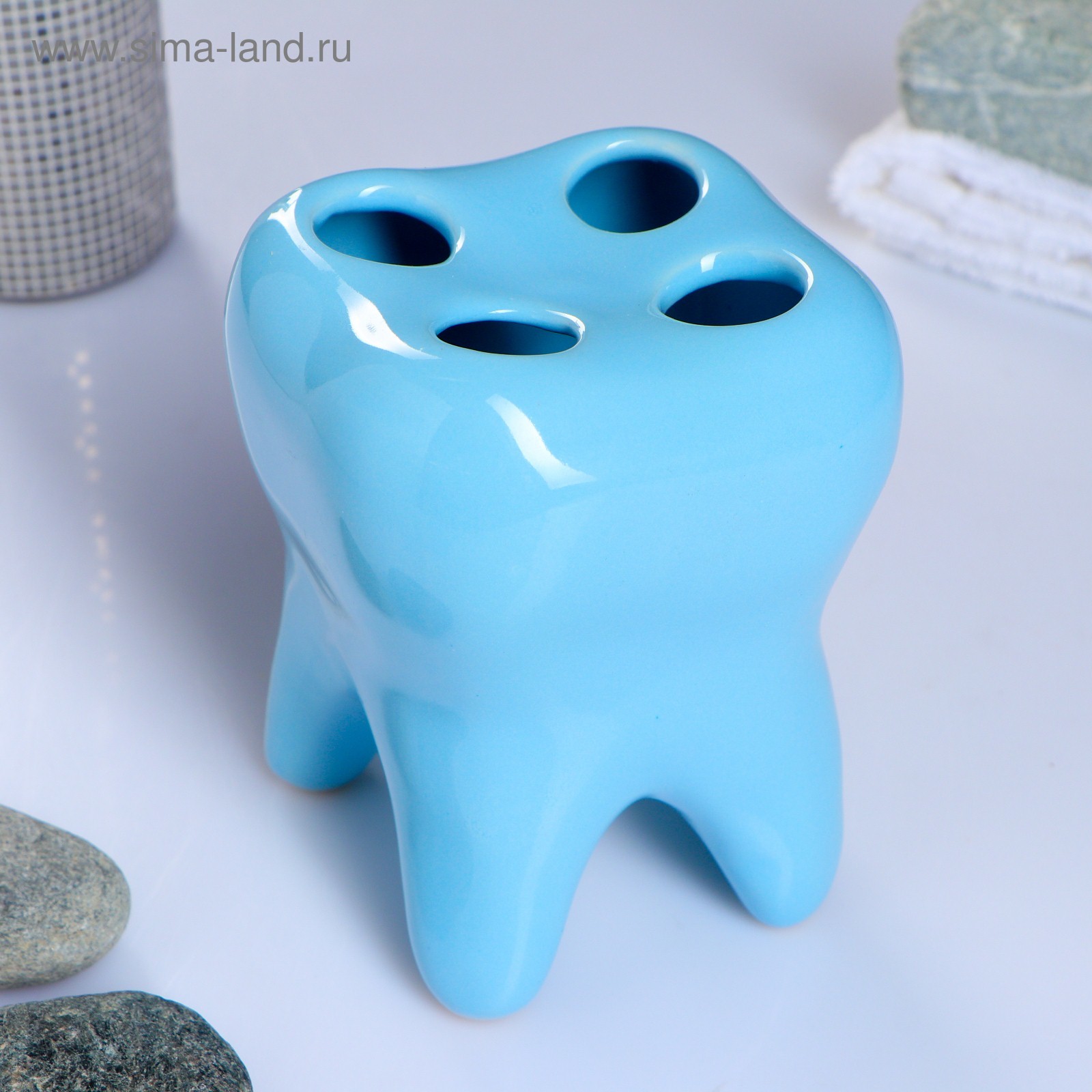 Стакан под зубную щетку "зуб" голубой
