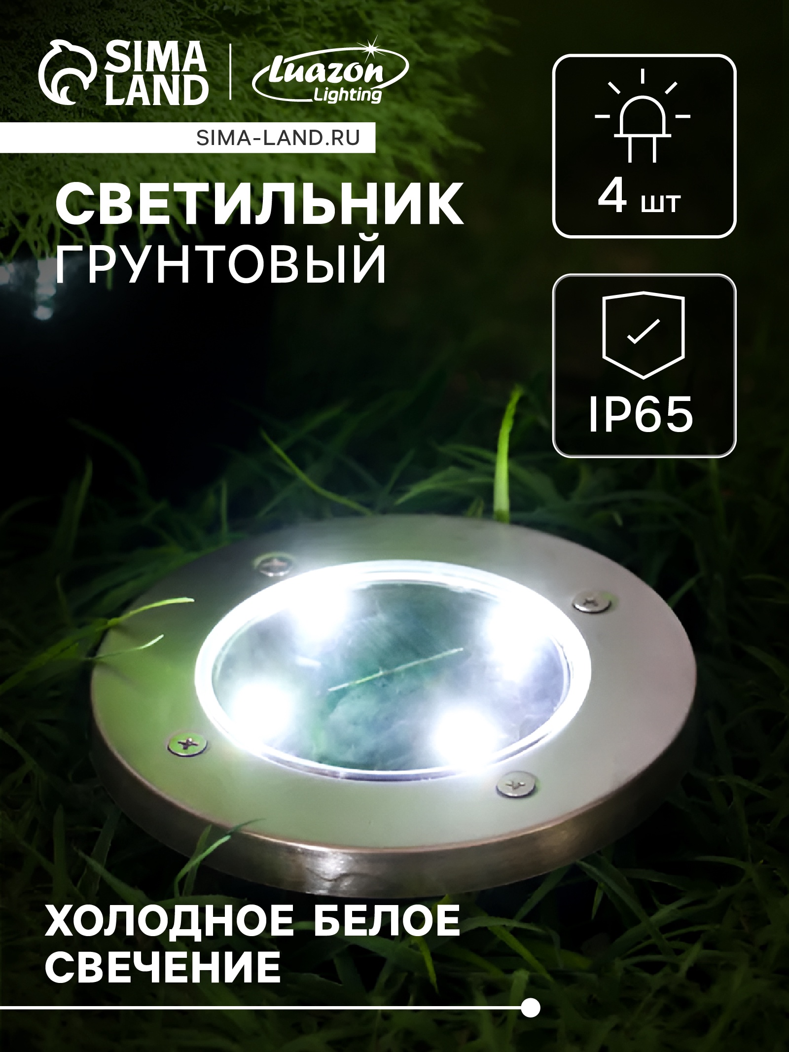 Садовый светильник на солнечной батарее, 4 Led, свечение белое