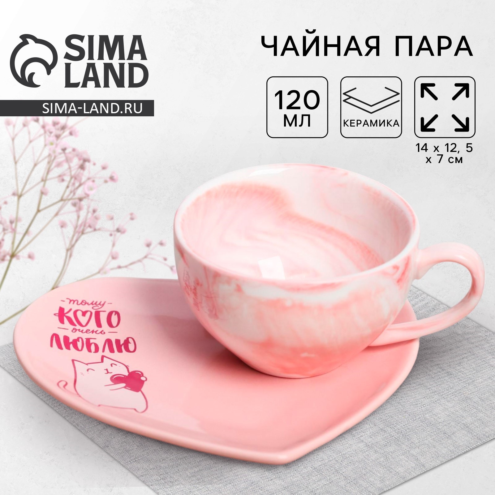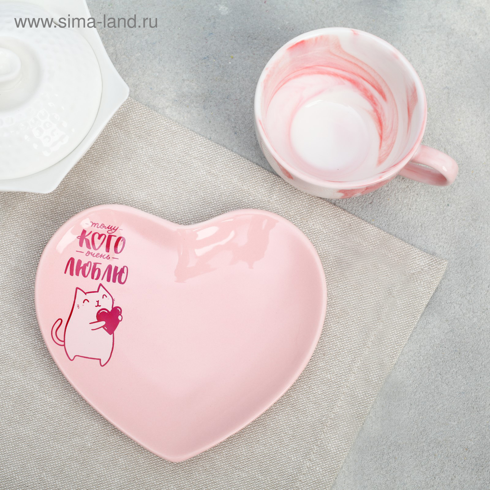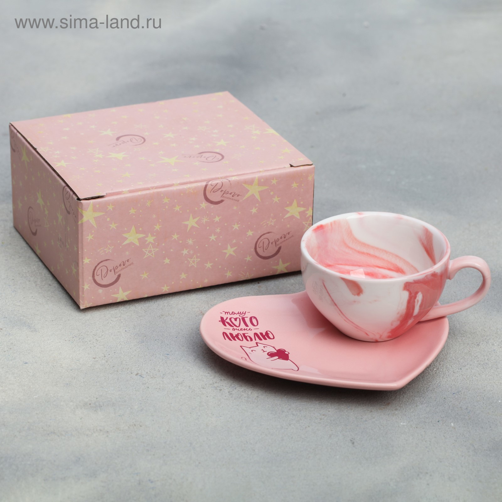 Подарочный набор керамический «тому кого люблю»: кружка 120 мл, блюдце, цвет розовый