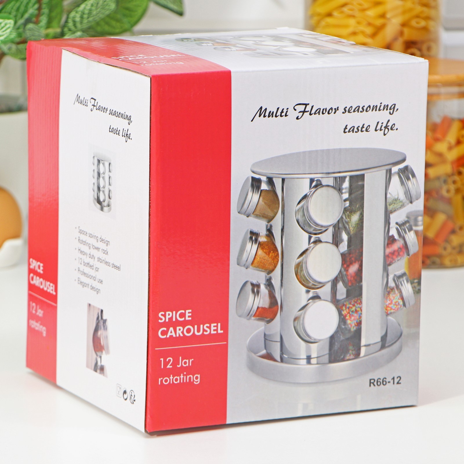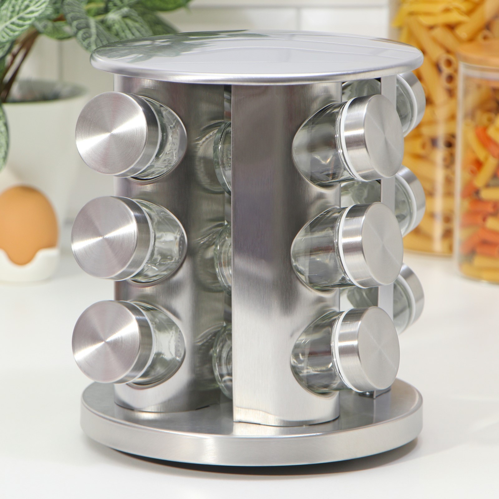 Набор для специй из стекла на подставке «профи», 19x20 см, 12 шт, цвет серебряный