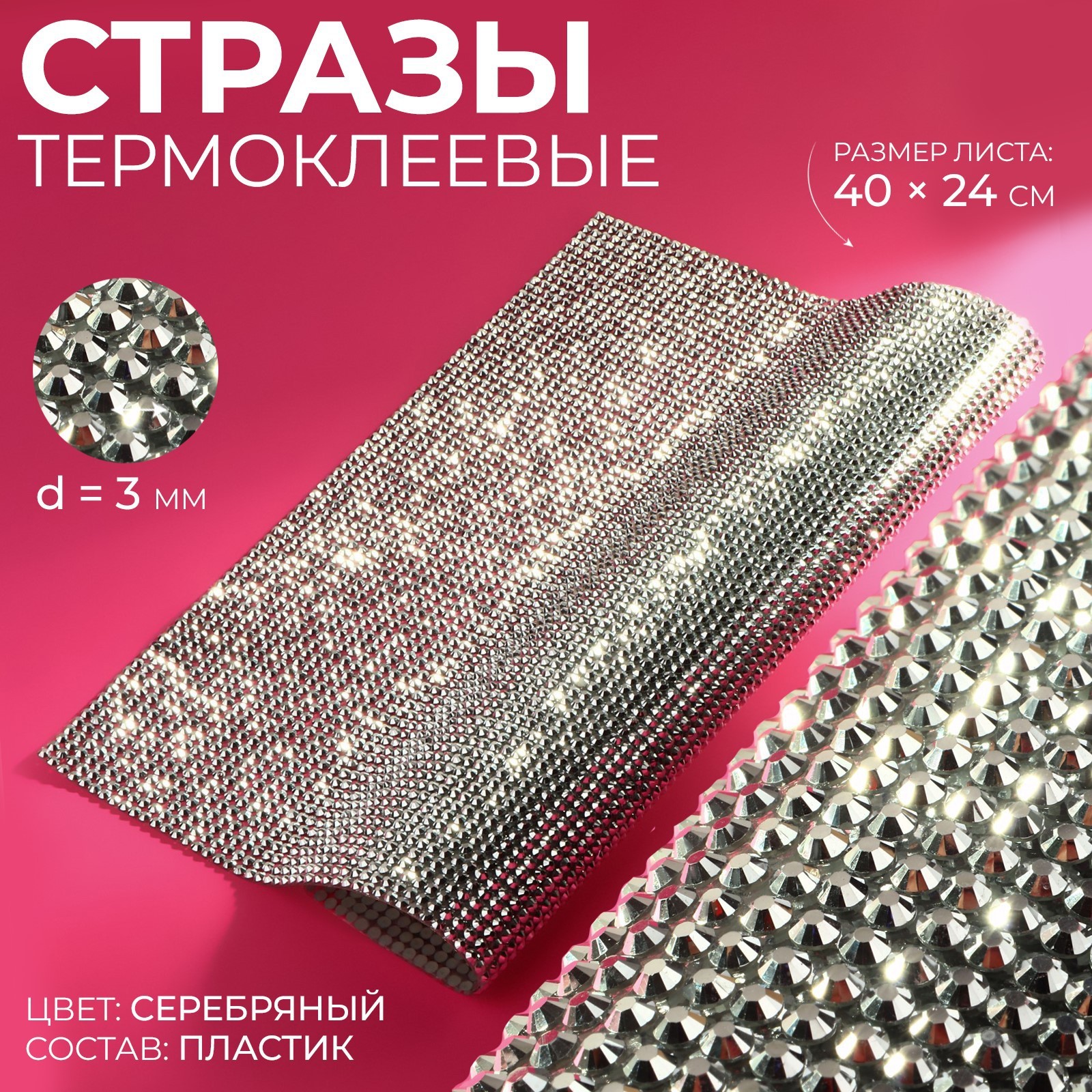Стразы термоклеевые на листе, D=3 мм, 40 24 см, цвет серебряный