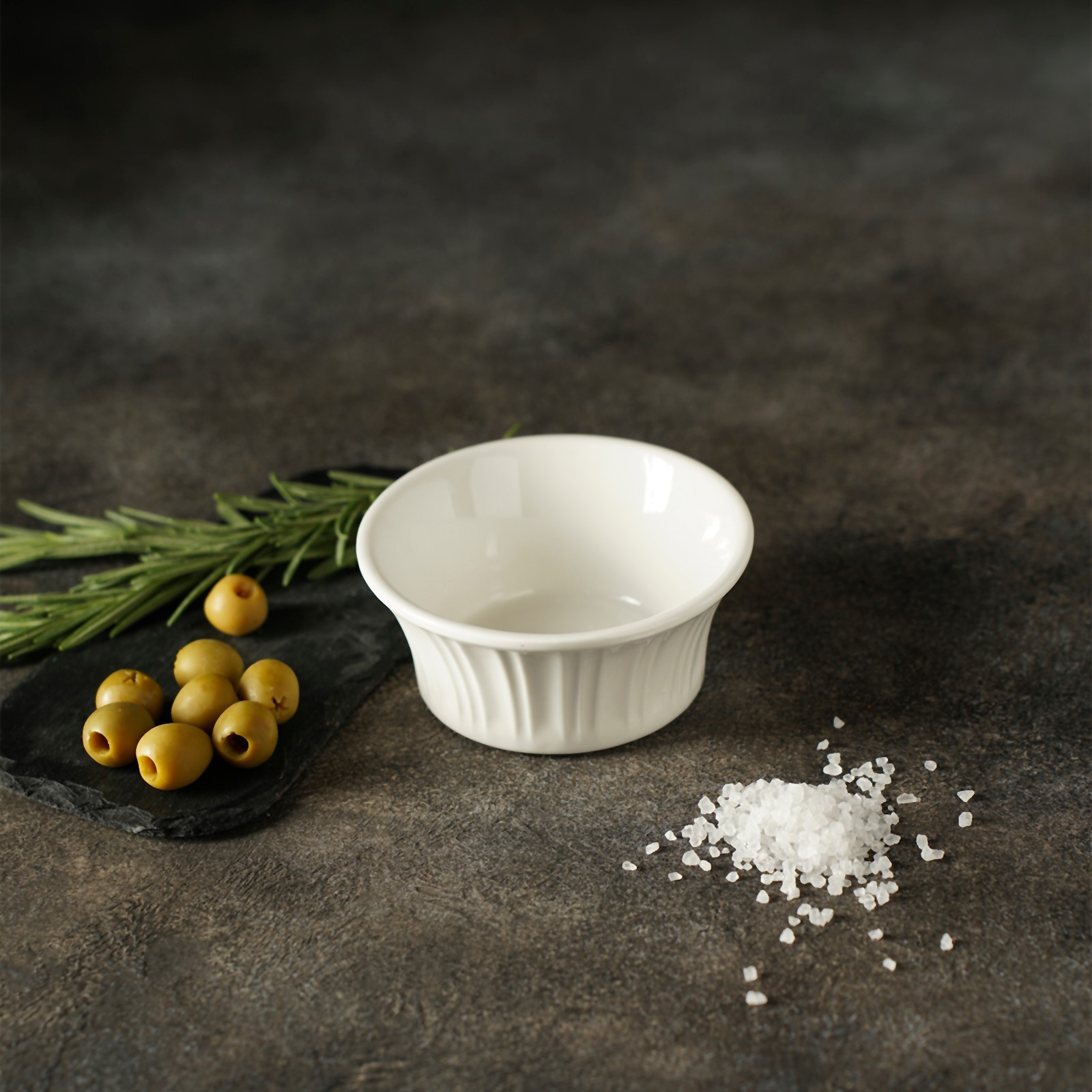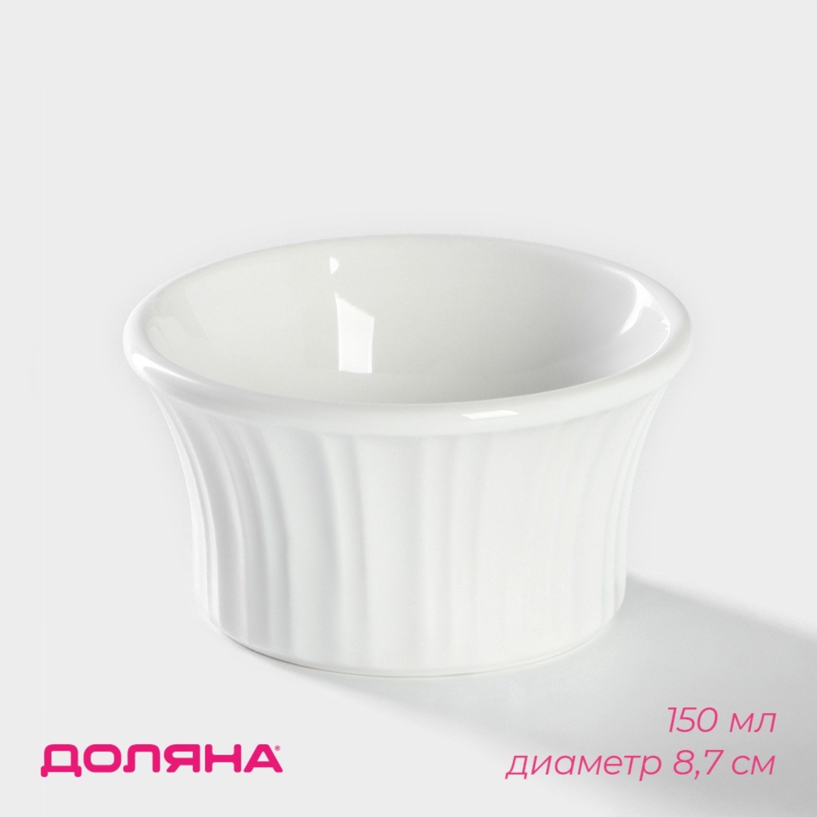 Рамекин из жаропрочной керамики доляна «маффин», 150 мл, d=8,7 см, цвет белый. Рамекин – миниатюрная форма для приготовления и подачи запеканок, крема-брюле, суфле и жюльенов, изготовленная из жаропрочной керамики. Особенности: используется в духовых шкафах, пароварках;выдерживает температурный режим до 250 С;можно использовать в посудомоечной машине и СВЧ. Можно установить маленькую посуду в кастрюлю с водой, чтобы приготовить полезное блюдо на водяной бане. Цвет: Белый Форма: Круглая Диаметр, см: 8.7 Фасовка, шт.: 1 Объём, мл: 150 Крышка: Нет Материал: Керамика Тип покрытия: Без покрытия Тип плиты: Нельзя использовать на плите Ячейки: Нет Тип формы: Для муссовых десертов Разъёмная форма: Нет Использование в духовом шкафу: Да Можно мыть в посудомоечной машине: Да Можно использовать в СВЧ-печи: Да Запрет реализации по сегментам: 00000000485  развернуть описание ▼