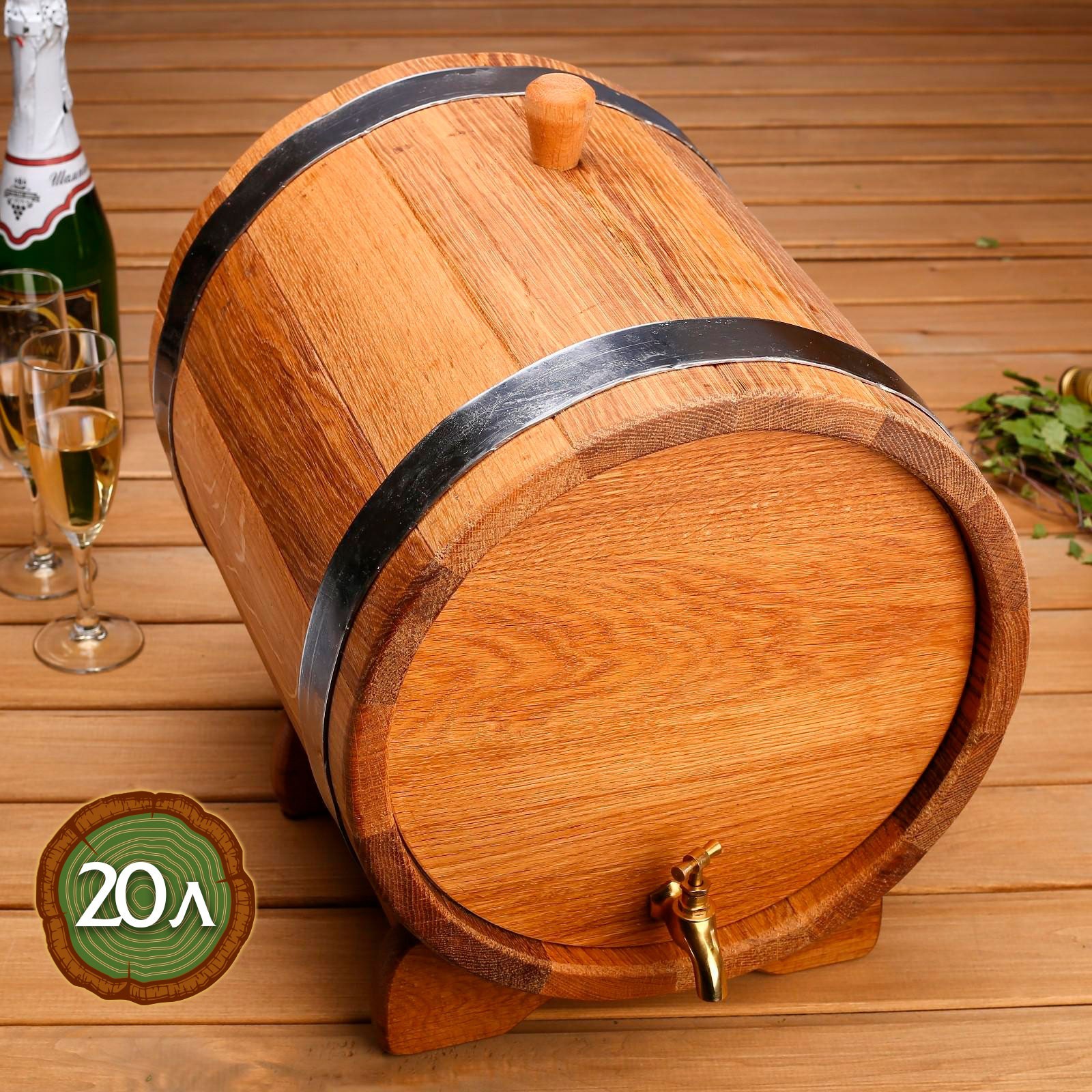 Бочка дубовая на подставке, 20л, кавказский дуб, кран из латуни, покрыта льняным маслом