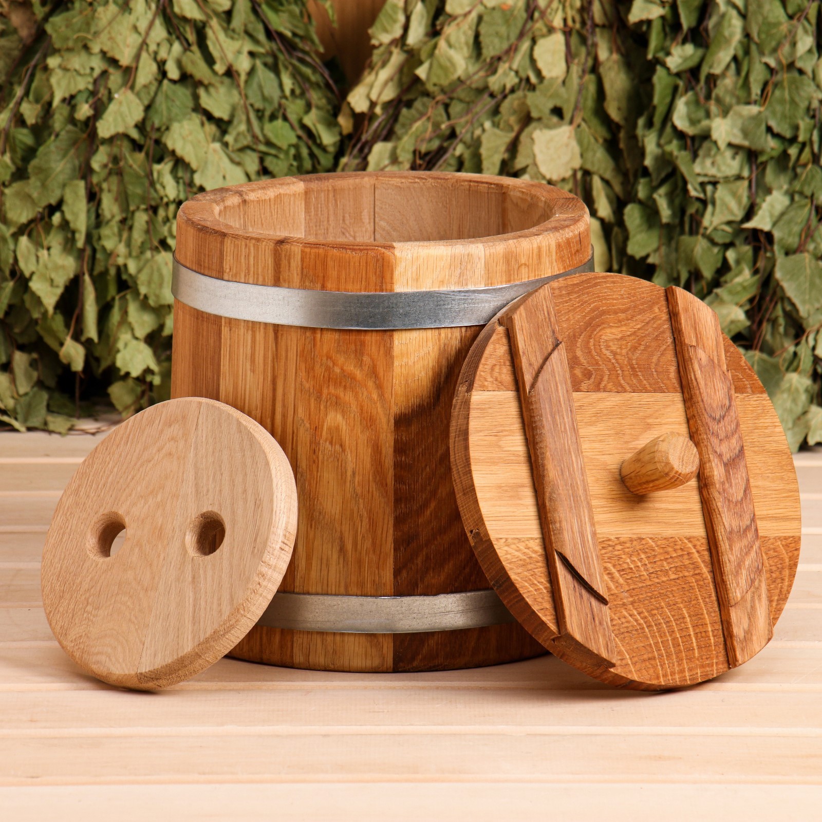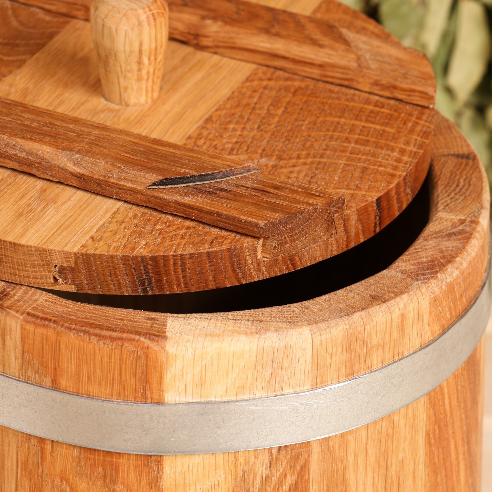 Кадка дубовая, 5л, нержавеющий обруч, с крышкой, с гнетом