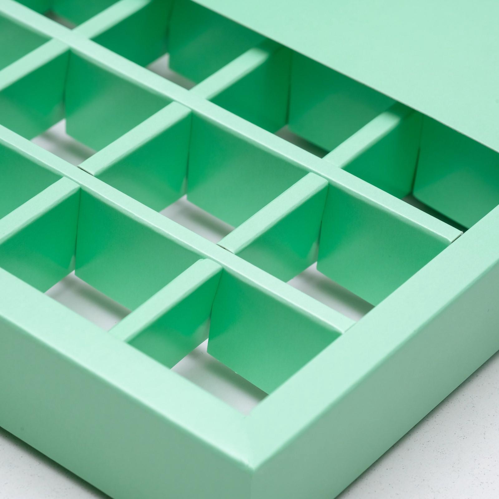 Кондитерская коробка для конфет 25 шт. «сердце», мятная, 22 22 3.5 см