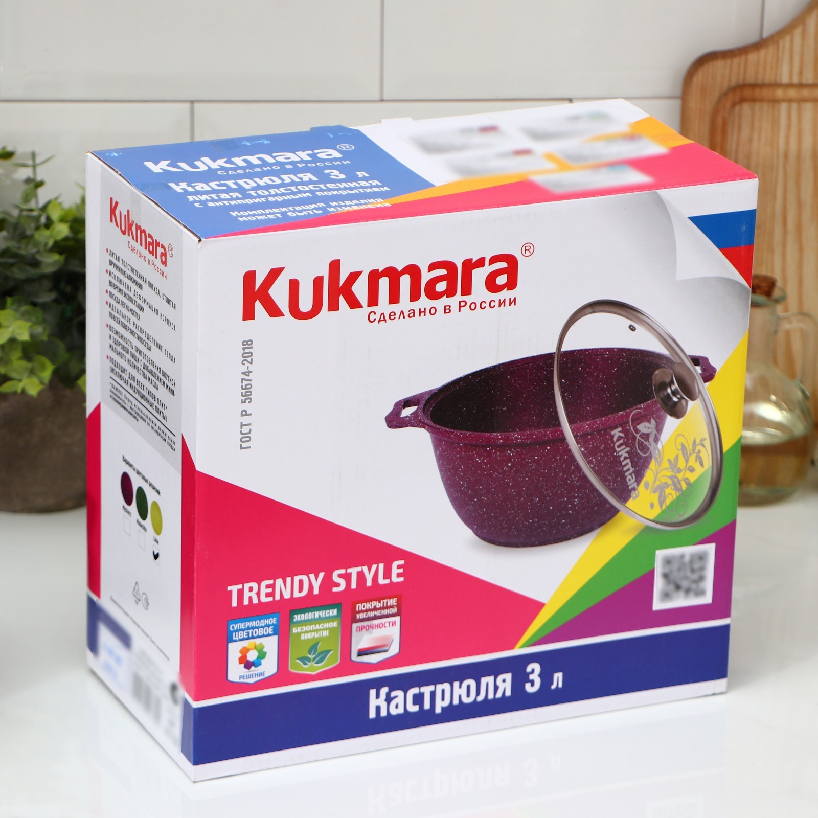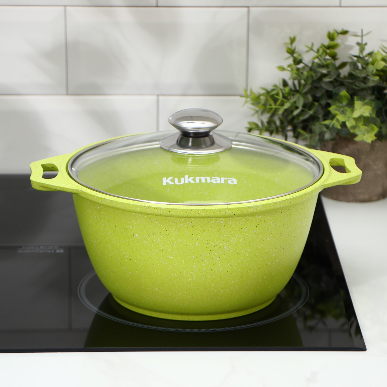 Кастрюля Trendy Style, 3 л, стеклянная крышка, антипригарное покрытие, цвет зелёный