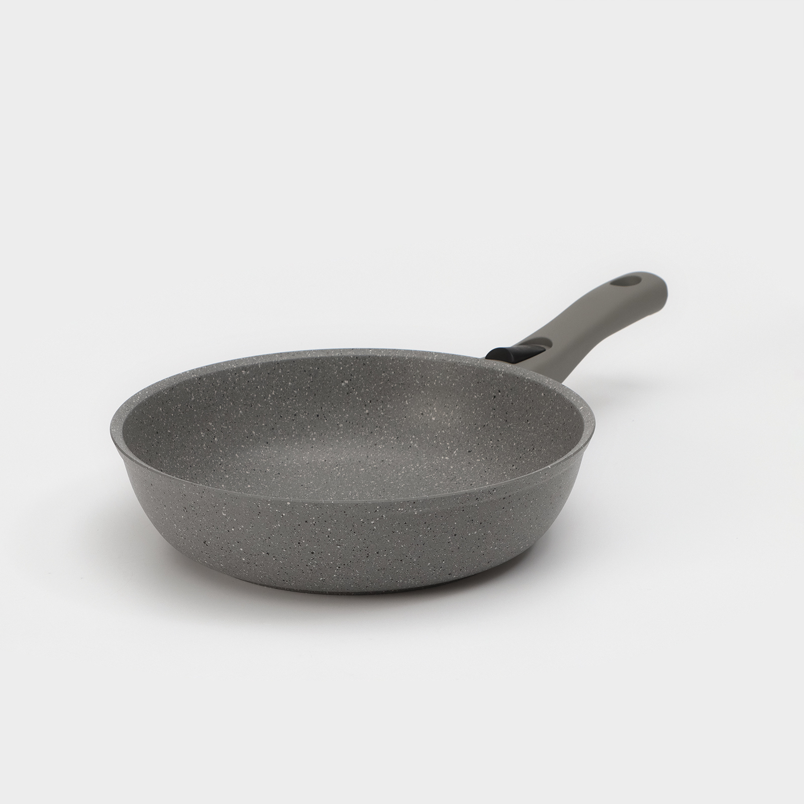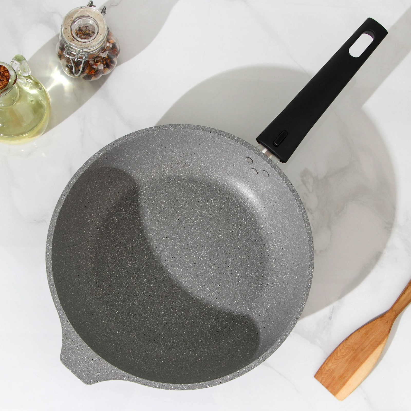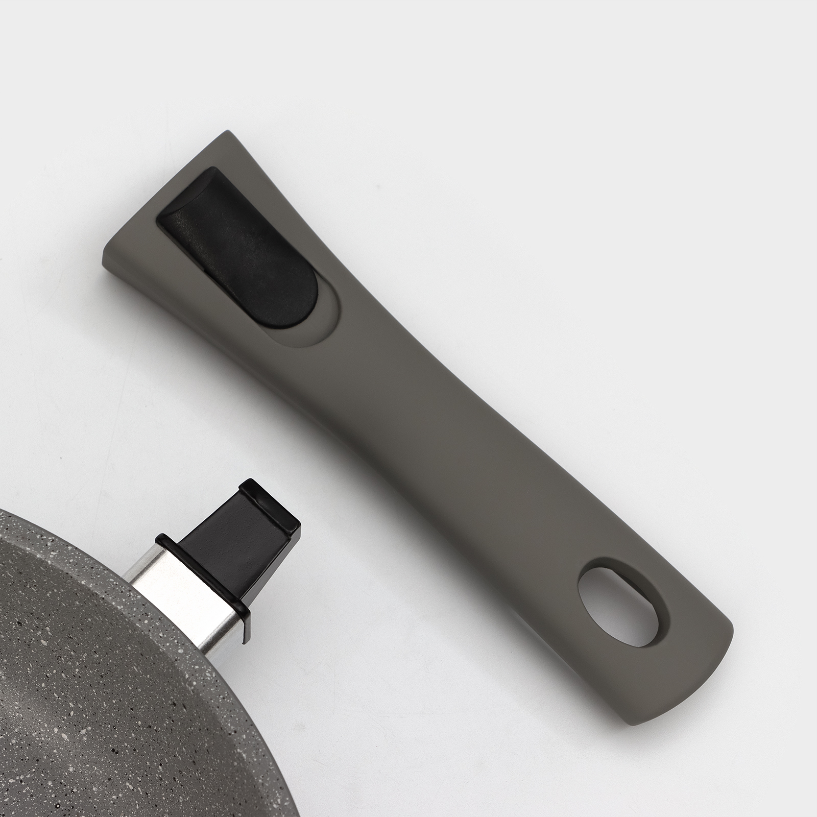 Сковорода, D=24 см, съёмная ручка, стеклянная крышка, антипригарное покрытие, цвет светлый мрамор
