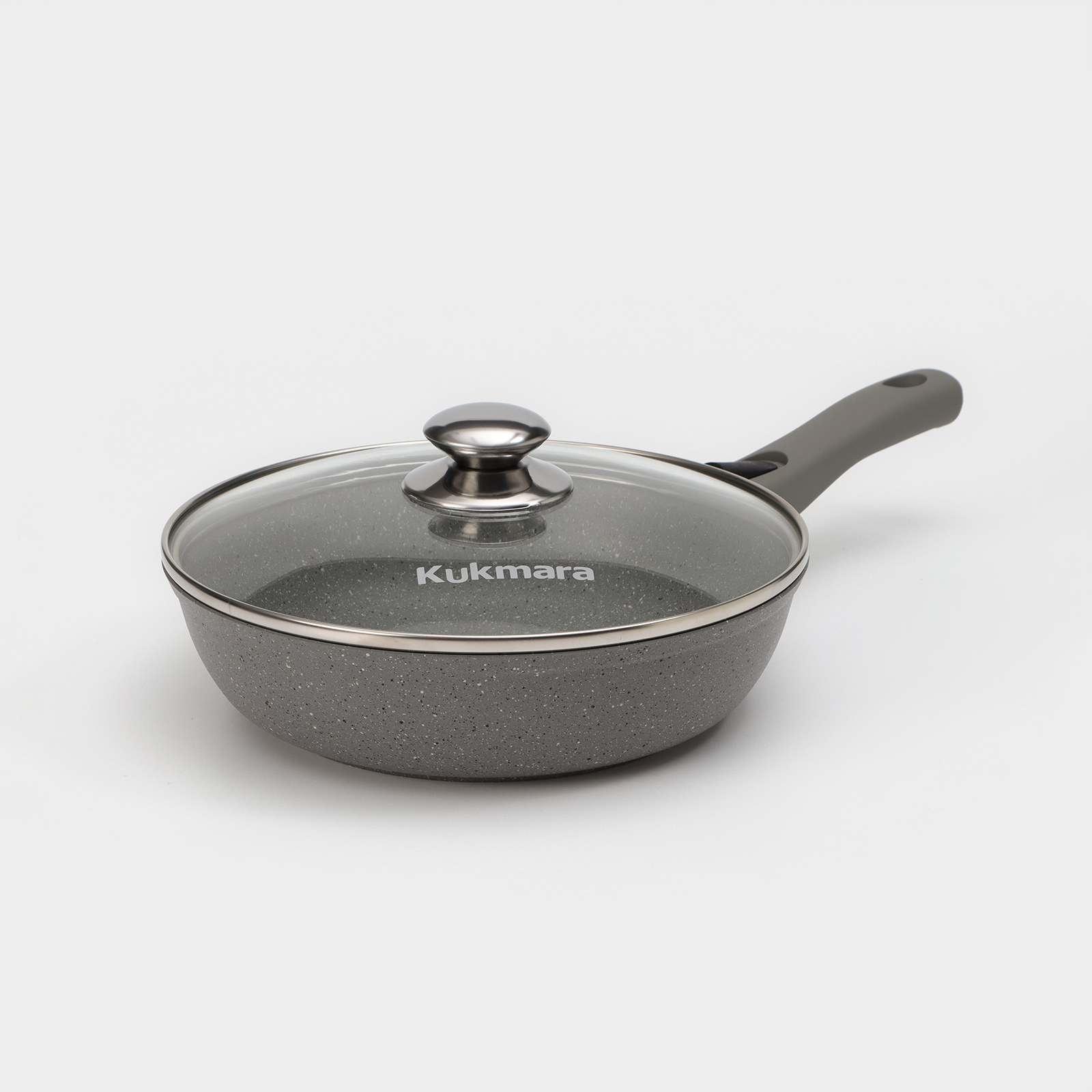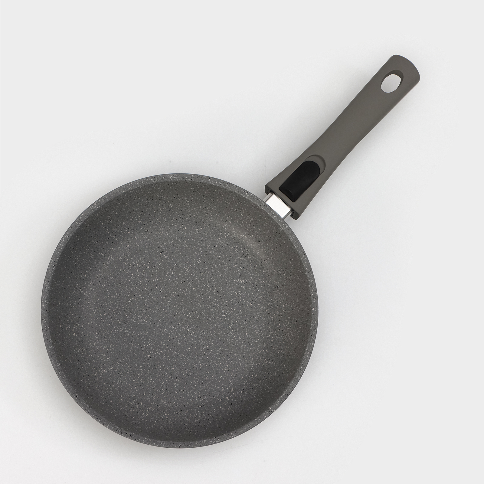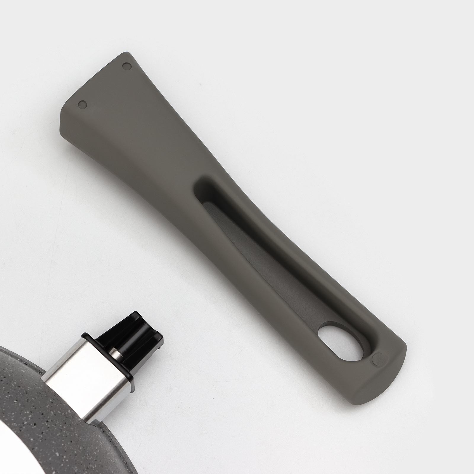 Сковорода, D=24 см, съёмная ручка, стеклянная крышка, антипригарное покрытие, цвет светлый мрамор