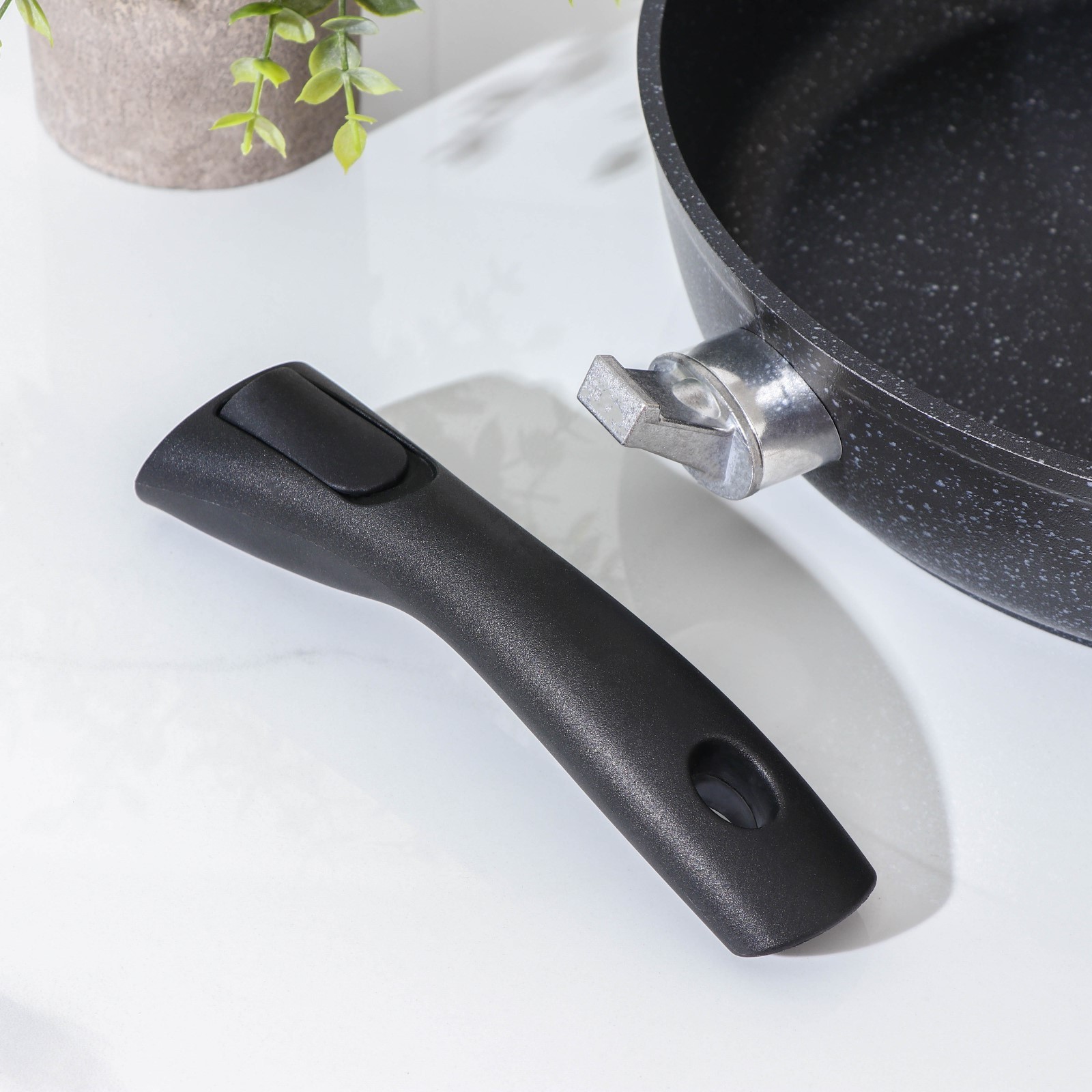 Сковорода, D=28 см, съёмная ручка, антипригарное покрытие, тёмный мрамор