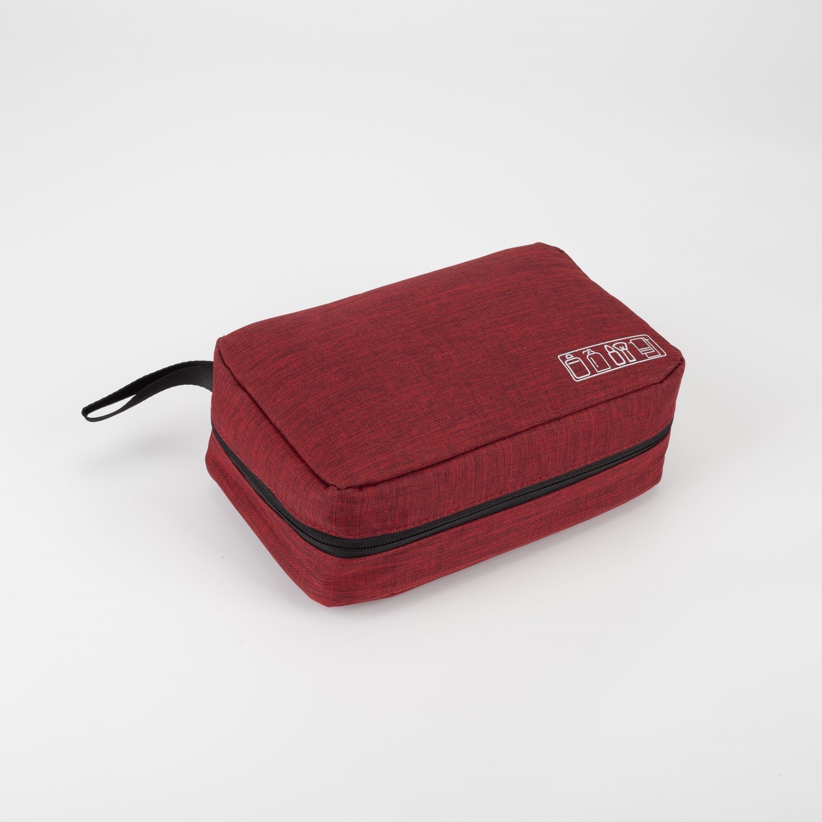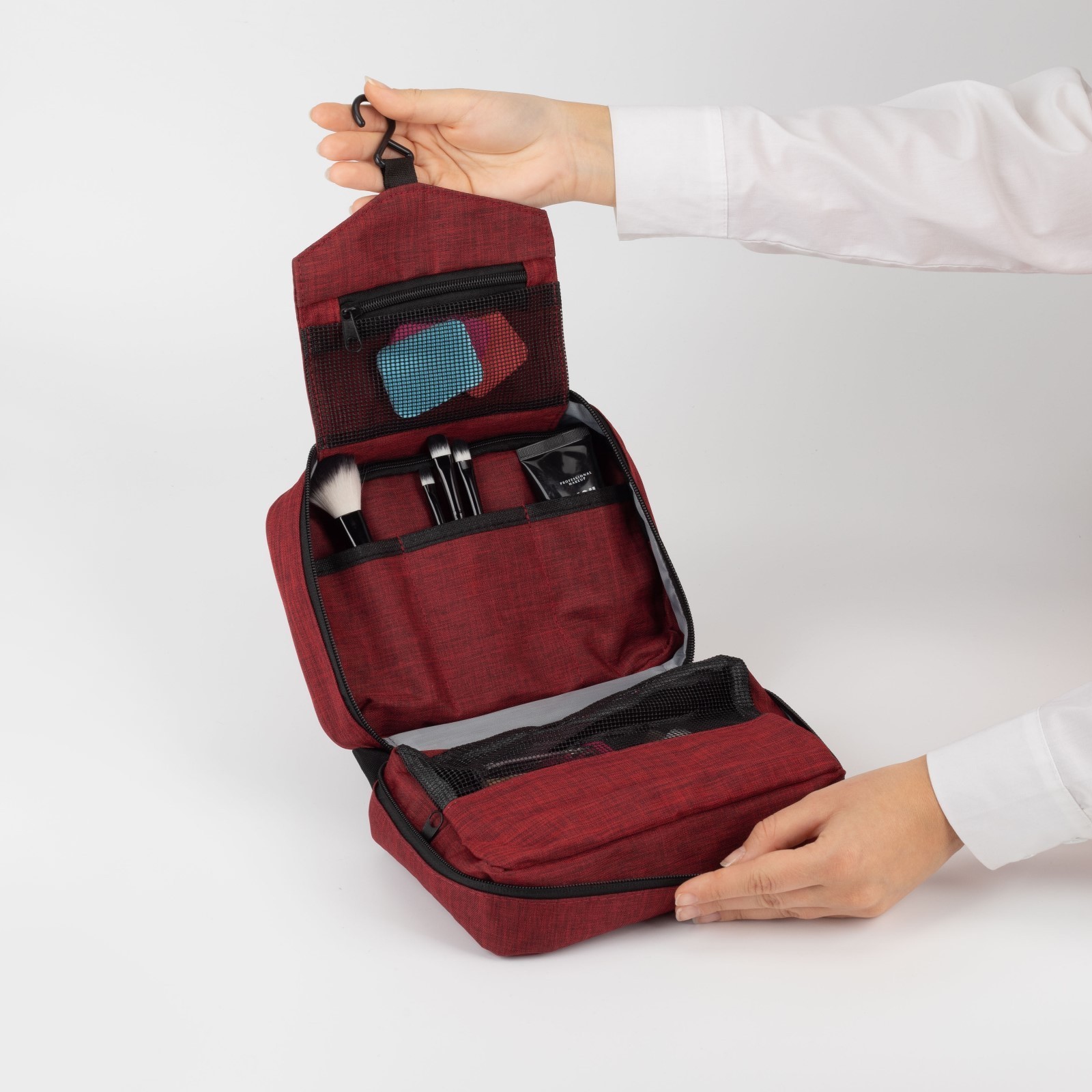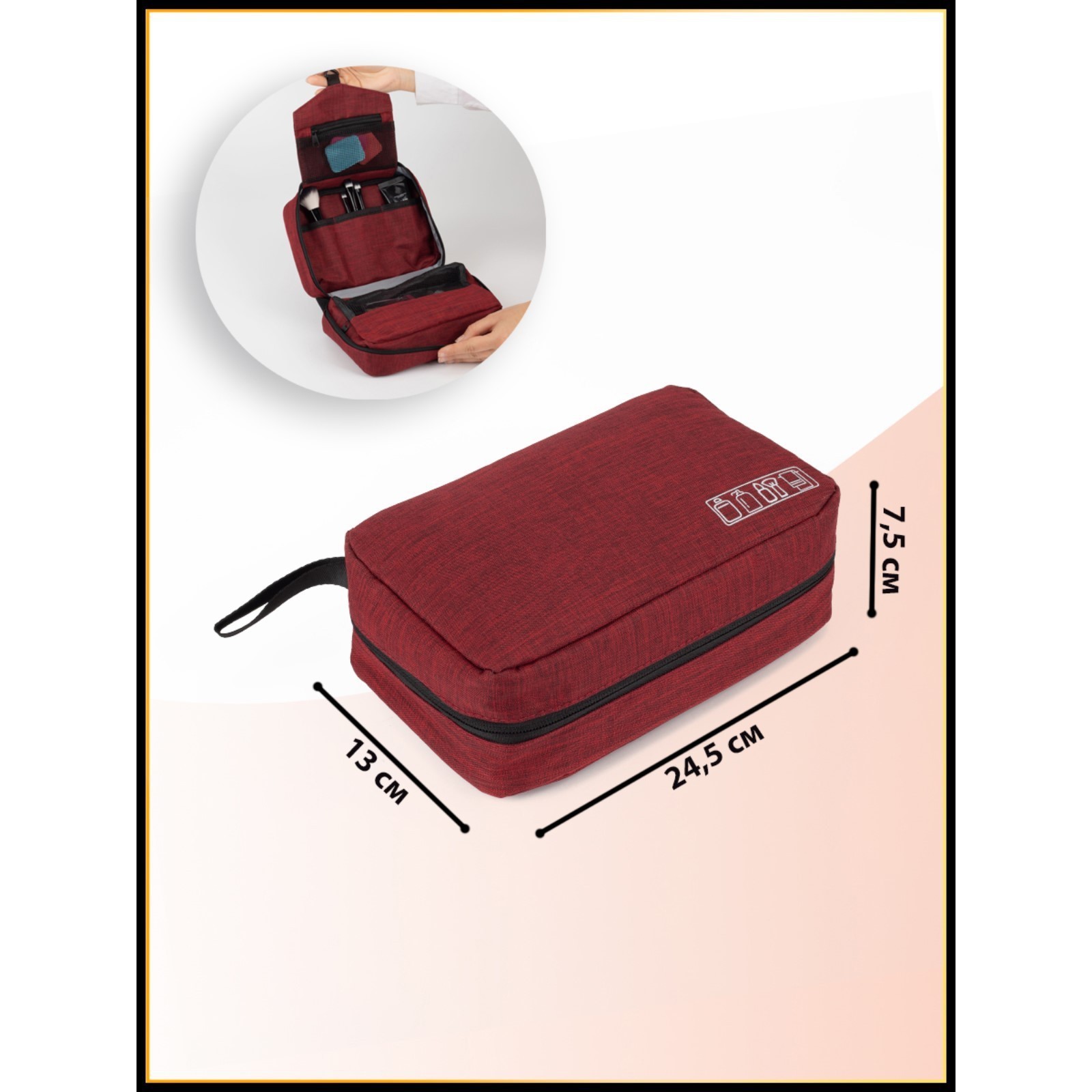 Косметичка, 2 отдела на молниях, с крючком, цвет красный