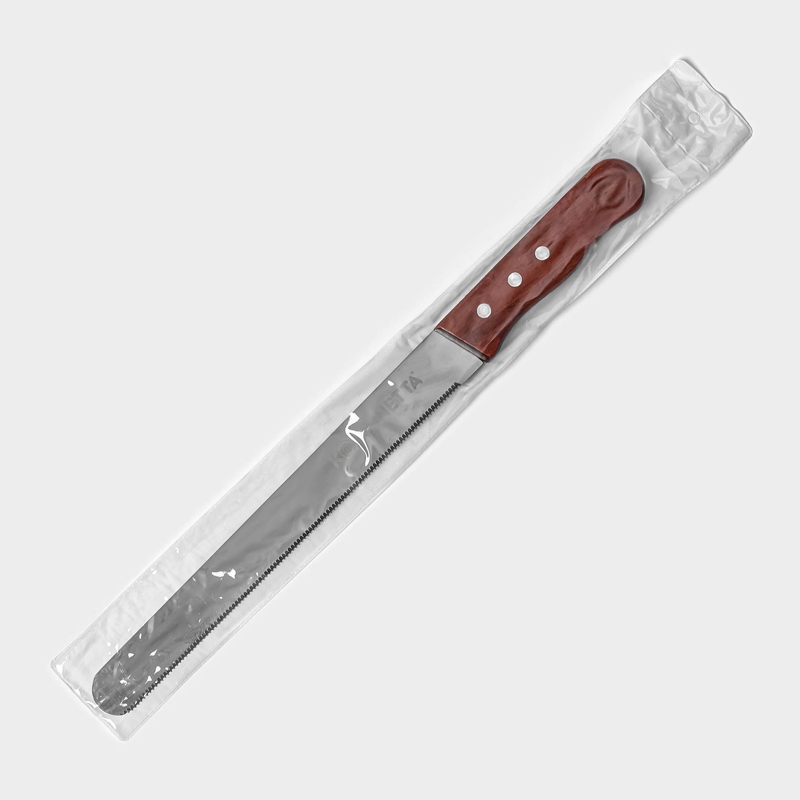Нож для бисквита мелкие зубцы Konfinetta, длина лезвия 25 см, деревянная ручка, толщина лезвия 0,8 мм