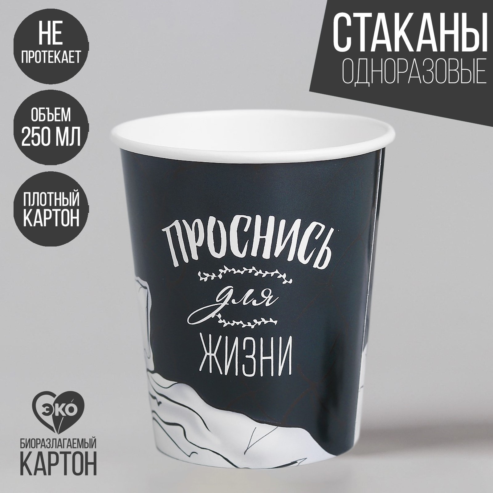 Стакан одноразовый бумажный для кофе "проснись для жизни", 250 мл