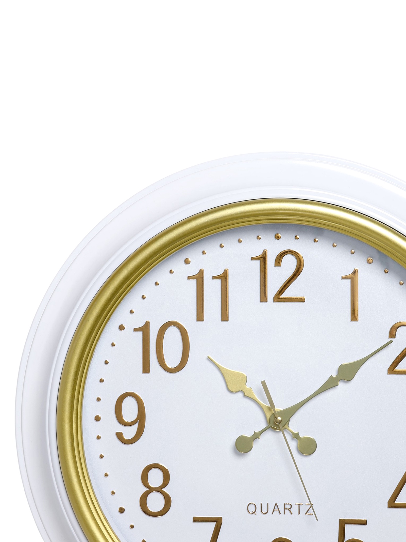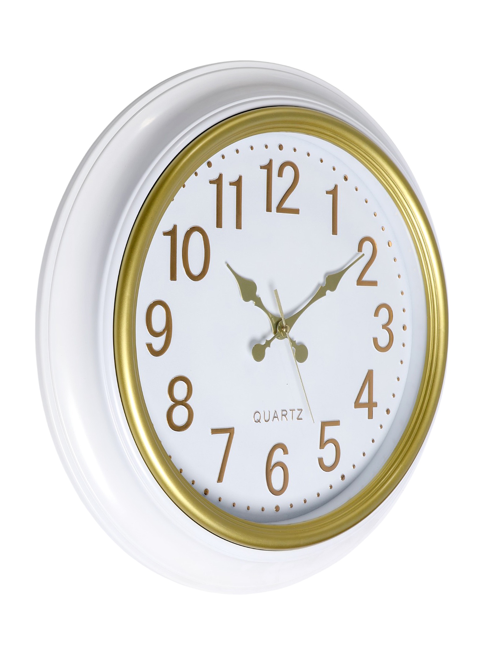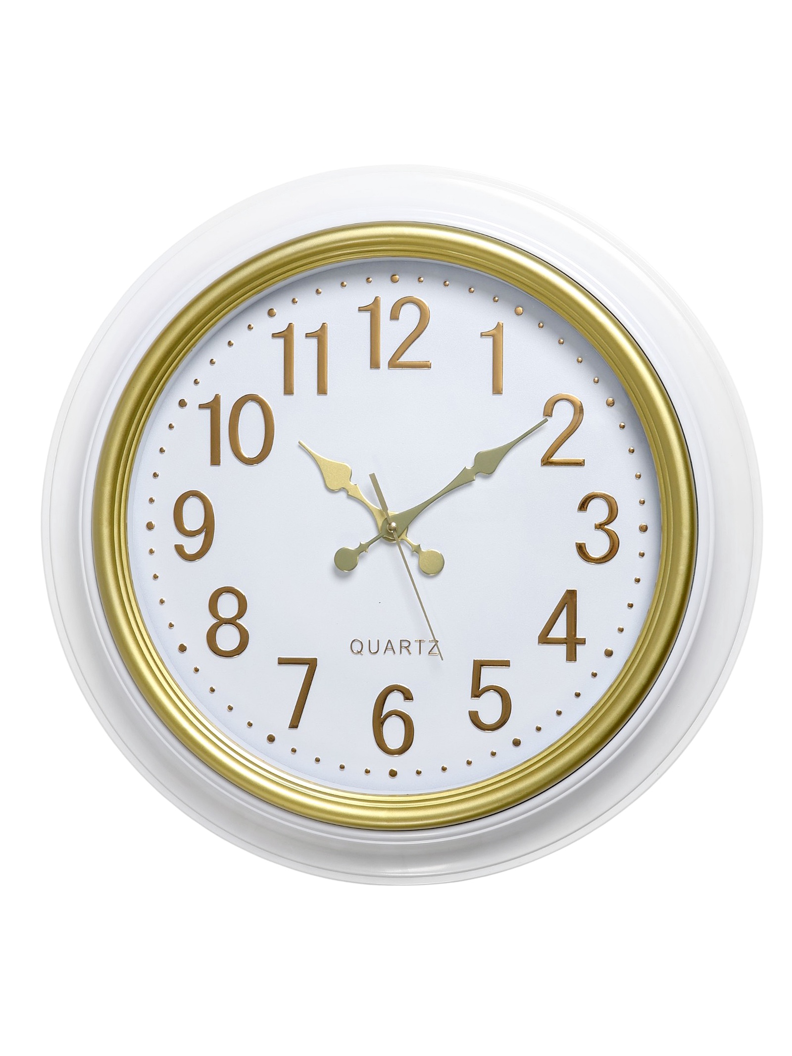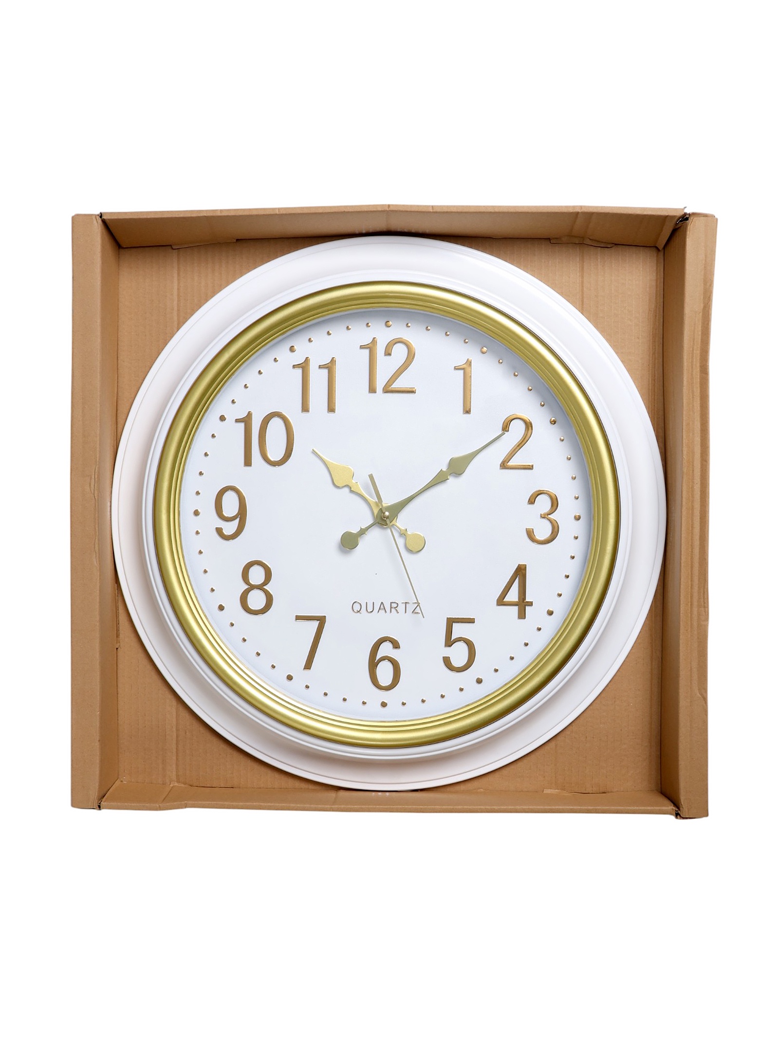 Цвет:Белый|Цвет:Золотистый|Форма:Круглая|Ширина, см:50|Высота, см:50|Тематика:Классика|Тип индикации:Арабские цифры|Тип механизма:Кварцевый|Форма корпуса:Круглая|Цвет циферблата:Белый|Работает от сети:Нет|Типоразмер батареек:AA (LR6)|Цвет корпуса:Белый|Бесшумные:Да|Страна:Китай