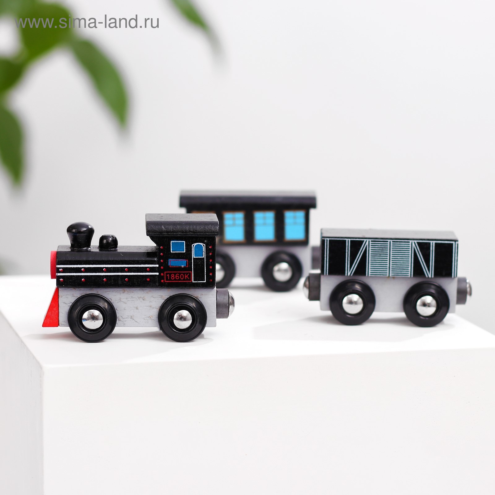 Паровоз и два вагона «магнитные» 3 7.5 19 см. Паровоз с двумя вагонами «Магнитный» — это компактный и увлекательный набор для детей от 3 лет. Яркий локомотив и вагоны легко соединяются между собой с помощью магнитов, расширяя игровые возможности и дополняя существующие железнодорожные наборы. Особенности набора Три элемента: паровоз и два вагона для разнообразия игры.Магнитное соединение вагонов обеспечивает лёгкость сборки и разборки.Совместимость с популярными брендами: KidKraft, Brio и «Томас и его друзья».Компактные размеры (3 7.5 19 см) делают набор удобным для хранения и транспортировки.Этот набор помогает развивать мелкую моторику, логическое мышление и воображение. Ребёнок учится создавать маршруты, комбинировать элементы и придумывать сюжеты, что способствует творческому развитию и улучшению координации движений. Преимущества Качественные материалы: дерево и металл, безопасные для детей.Яркий дизайн и магнитное соединение делают игру ещё интереснее.Идеальный подарок для мальчиков и девочек на 23 Февраля или другой праздник.Вид транспорта:Локомотив|Назначение транспорта:Железнодорожный (поезда)|Цвет:Серый|Цвет:Чёрный|Возраст:От 3 лет|Количество элементов:3|Количество вагонов:3|Вид упаковки:Пакет|Тематика праздника:23 Февраля|Материал:Дерево|Материал:Металл|Дополнительные функции:Развивающая|Тип управления:Без механизма|Вид поезда:Классический|Особенности:Окружение|Среда перемещения транспорта:Наземный транспорт|Страна:Китай  развернуть описание ▼
