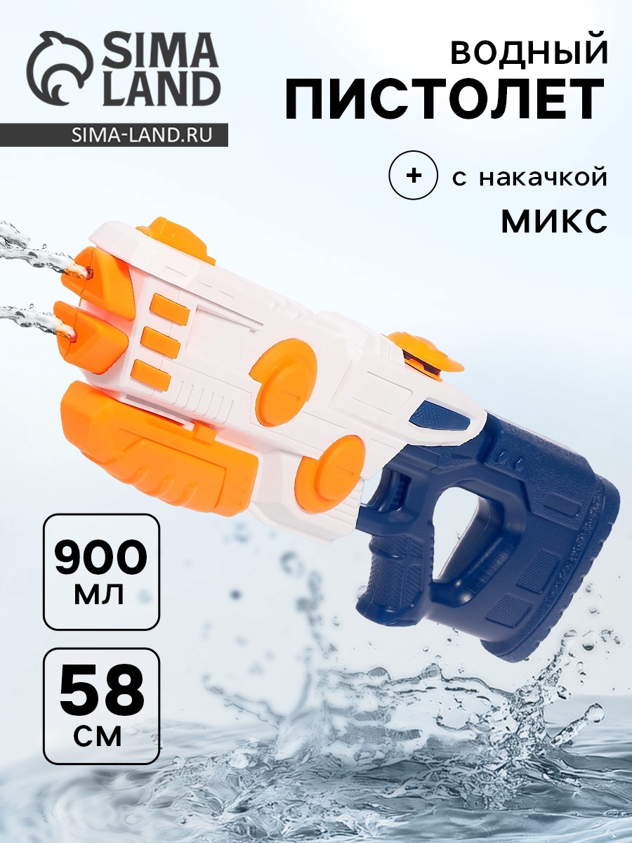 Водный пистолет «киборг», без курка, 58 см, микс. Готов к водным баталиям будущегоx Пистолет «Киборг» – твой мощный инструмент для летних приключений! Хочешь устроить настоящие сражения или просто освежиться в жаркий деньx Без курка – просто накачай: нажми на рычаг, чтобы накачать воду, и мощная струя уже готова к бою! Чем больше усилий, тем дальше и сильнее выстрел. Почувствуй себя настоящим киборгом из будущего!Гигантский размер: длина пистолета целых 58 см – он выглядит внушительно и готов к серьёзным боям. Возьми его с собой на пляж, в парк или во двор – теперь ты настоящий мастер водных сражений!Цвет пистолета выбирается случайным образом (МИКС), так что каждый раз это будет сюрприз! Его стиль такой же яркий и дерзкий, как технологии будущего. Будь готов сразить всех своим внешним видом!Прочный и удобный: пистолет сделан из качественного пластика, который выдерживает активные игры. Лёгкий и эргономичный, он комфортно лежит в руке, позволяя часами тренироваться и сражаться без усталости.Стань героем будущего: представь, что ты участник секретной миссии или защитник своей базы от роботов-захватчиков. Твой пистолет станет главным оружием в достижении целей. Устраивай соревнования с друзьями, тренируй меткость и становись настоящим героем!Что тебя ждёт: каждый выстрел – это новый повод для радости! Ты тренируешь силу рук, координацию и меткость. А главное – игры с пистолетом «Киборг» принесут тебе море смеха, азарта и незабываемых моментов! Для кого:Для мальчика|Возраст:От 7 лет|Объём, мл:900|Вид упаковки:Пакет|Материал:Пластик|Страна:Китай  развернуть описание ▼