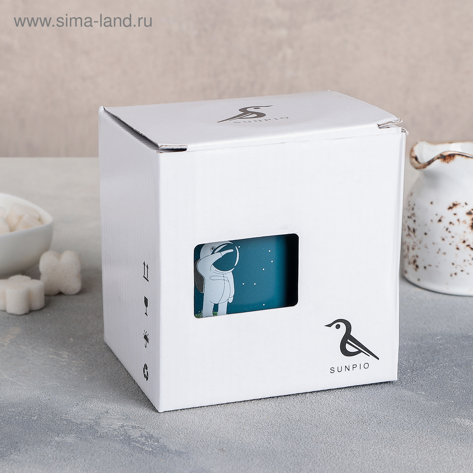 Кружка керамическая с крышкой и ложкой «космонавт», 350 мл, рисунок микс